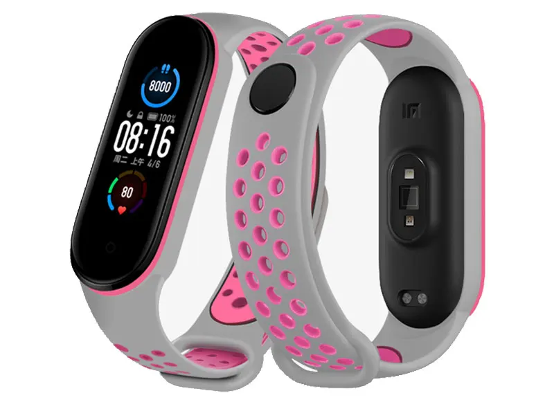 Ремешок силиконовый для наручных часов MiBand 3 4 5 6, Воздухопрони...
