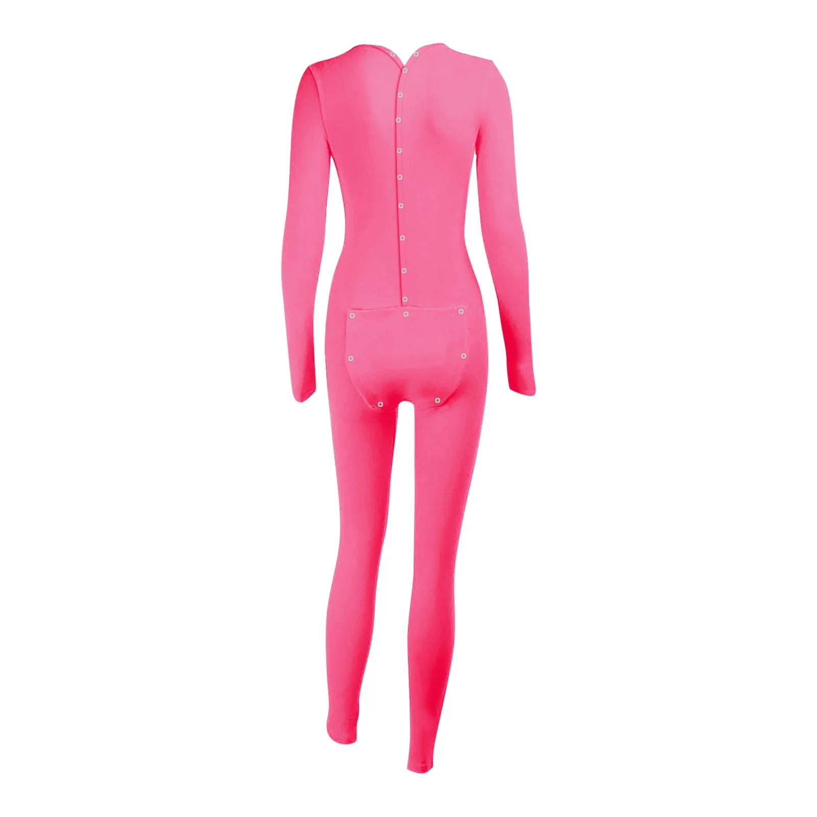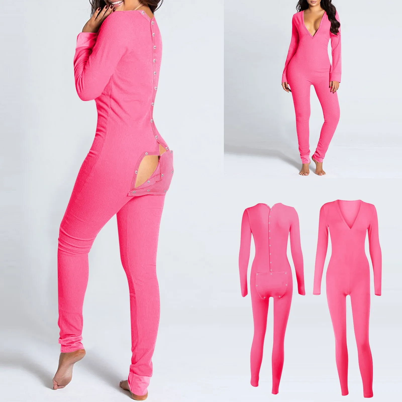 Пикантная женская пижама-комбинезон на пуговицах сзади, пижама с V-образным вырезом и длинным рукавом, функциональный комбинезон, рабочая одежда на пуговицах