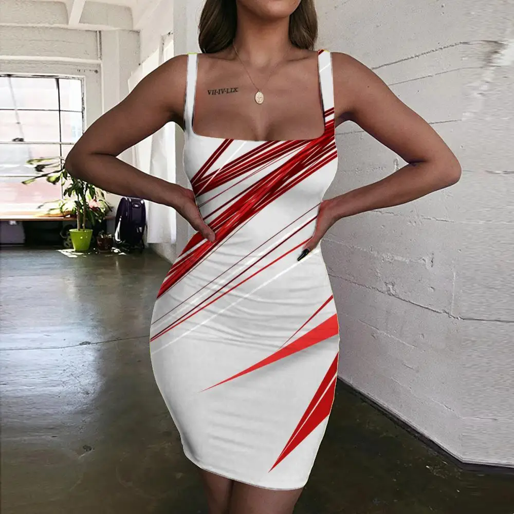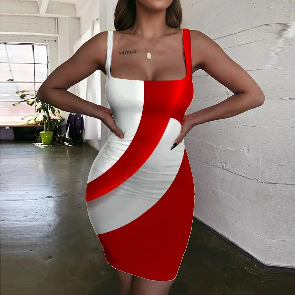 Сексуальное Красное женское платье-сарафан с абстрактным принтом, короткое вечернее платье-мини без рукавов