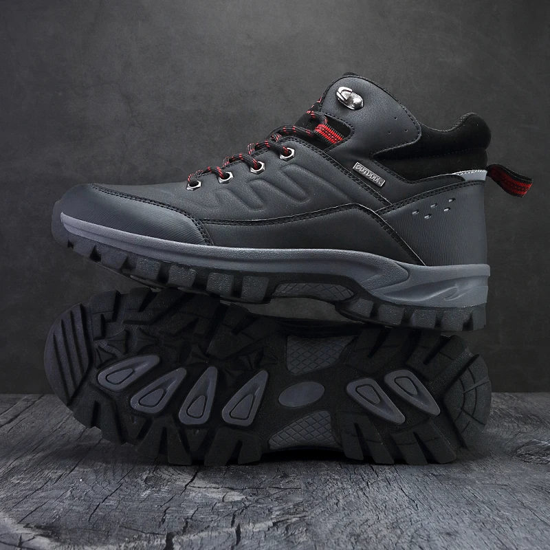 Мужские зимние кожаные ботинки, водонепроницаемые плюшевые теплые снегоступы, Уличная обувь для скалолазания, туризма, кроссовки, защитная обувь