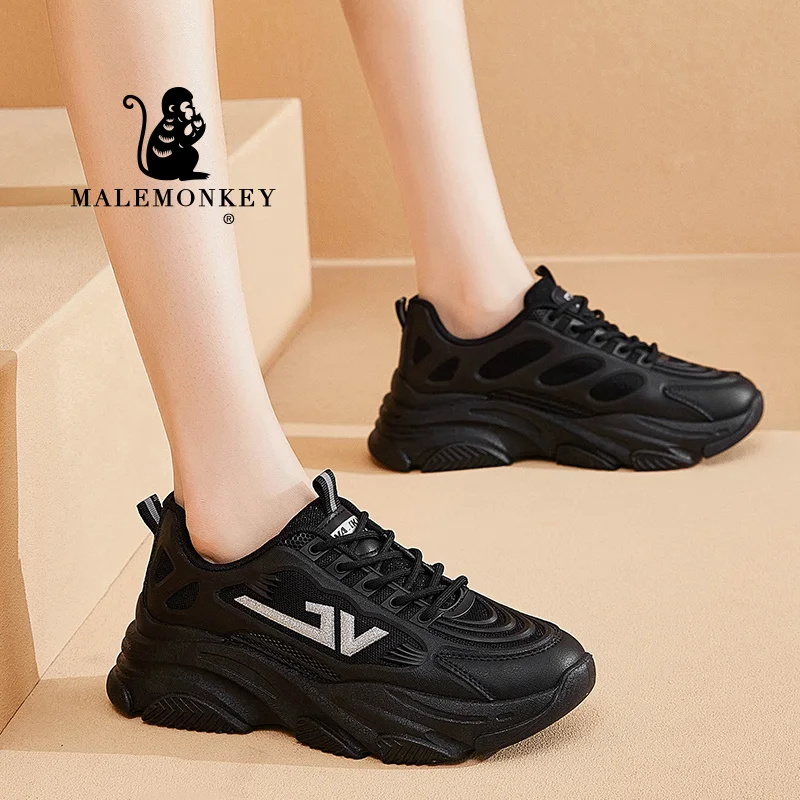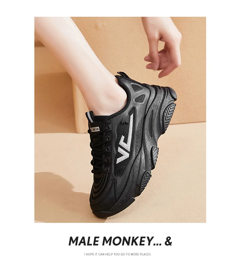 Женские кроссовки на платформе, черные дышащие кроссовки на шнуровке, весна-осень, 2021