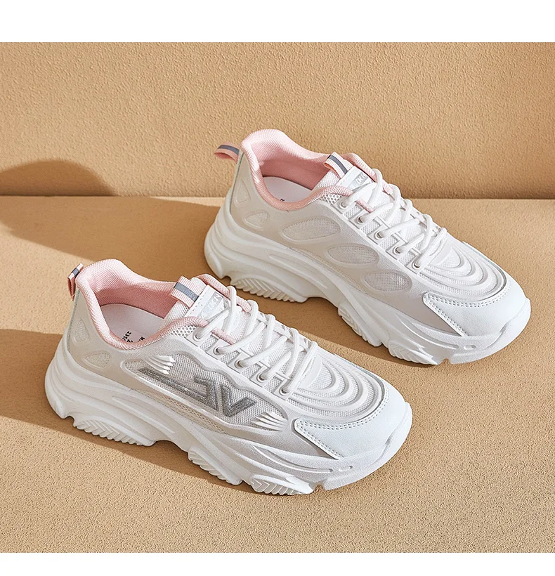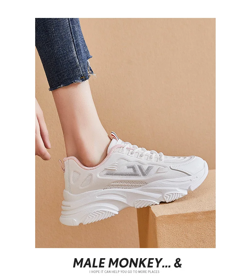 Белые кроссовки на платформе, женские кроссовки с сеткой без застежки, весна-осень 2021, на шнуровке, уличная дышащая Спортивная обувь для бега