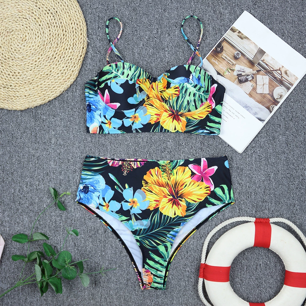 Женский раздельный купальник, бикини с высокой талией и принтом лис...