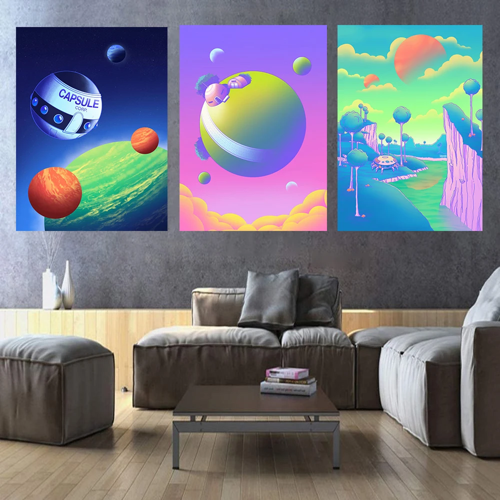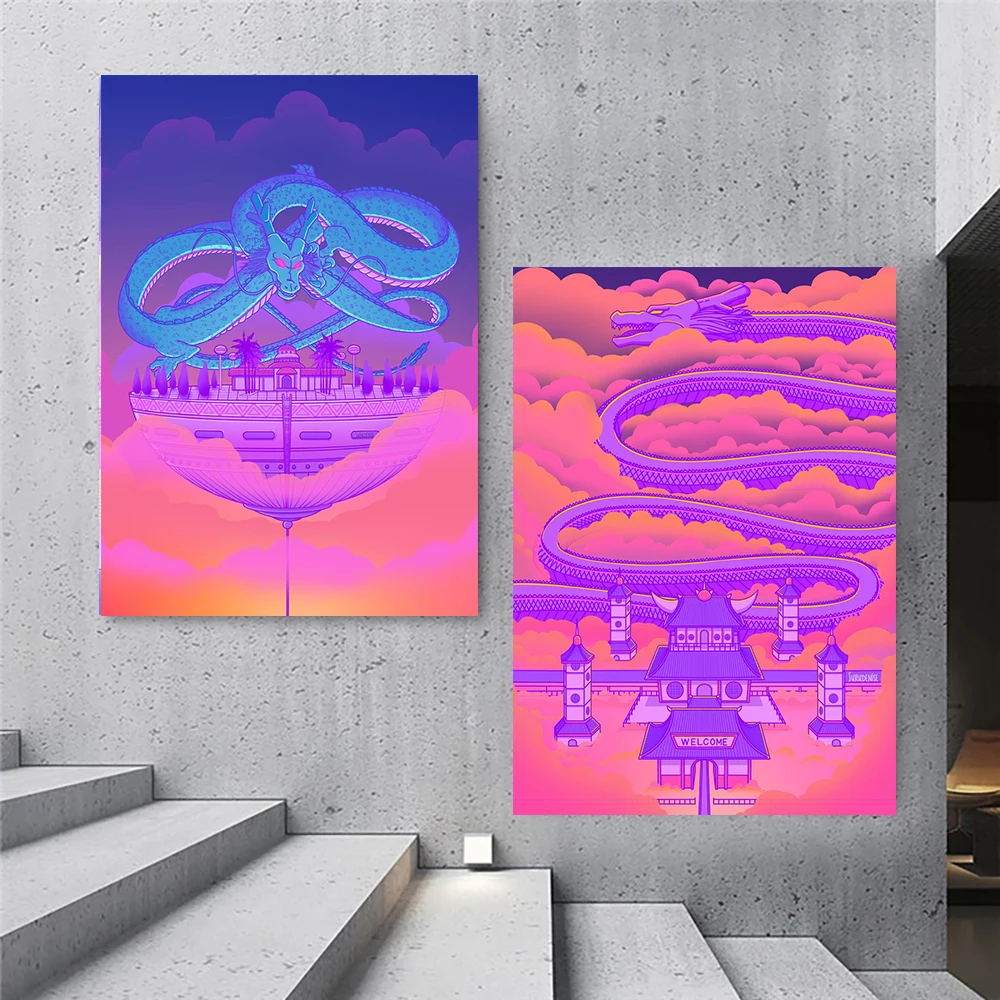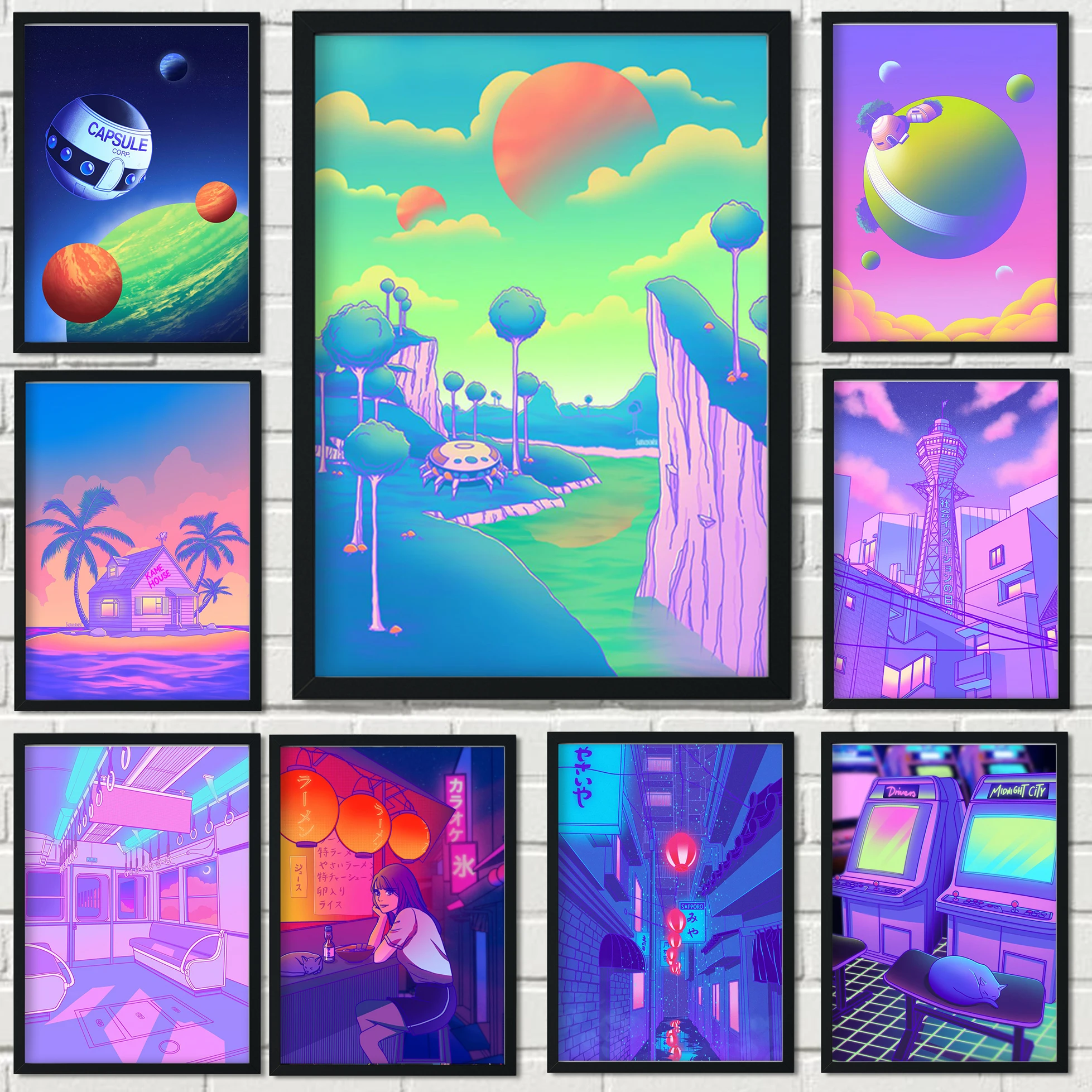 Постер с изображением ночного города, улицы, Киото, космоса, 80-х годов, дракона, розового цвета, волны, стильная картина, настенное искусство, кавайный декор для комнаты, постер на холсте