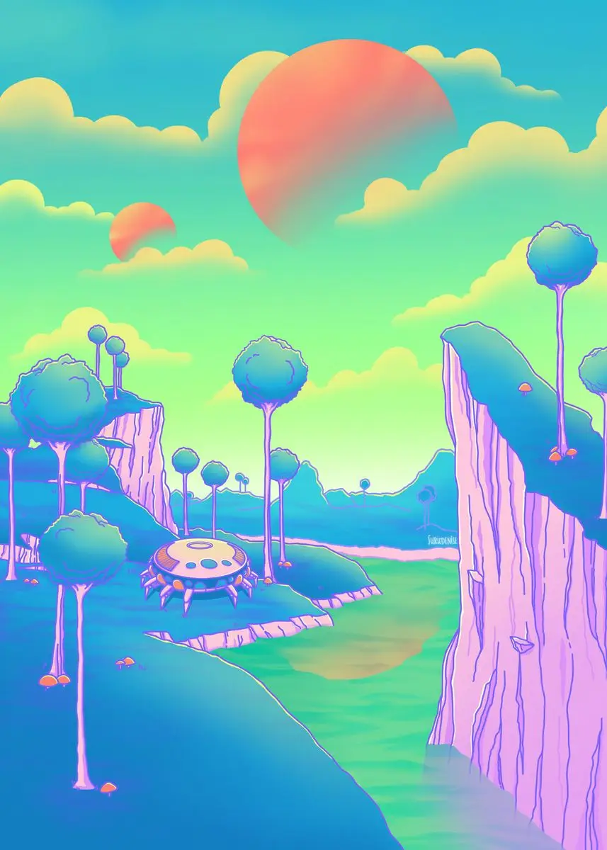 Абстрактный психоделический гриб-скелет в стиле Триппи, Настенная к...