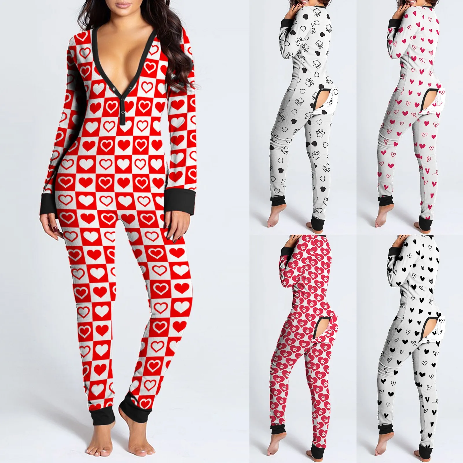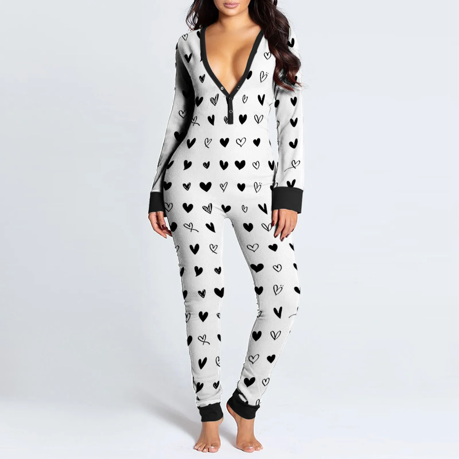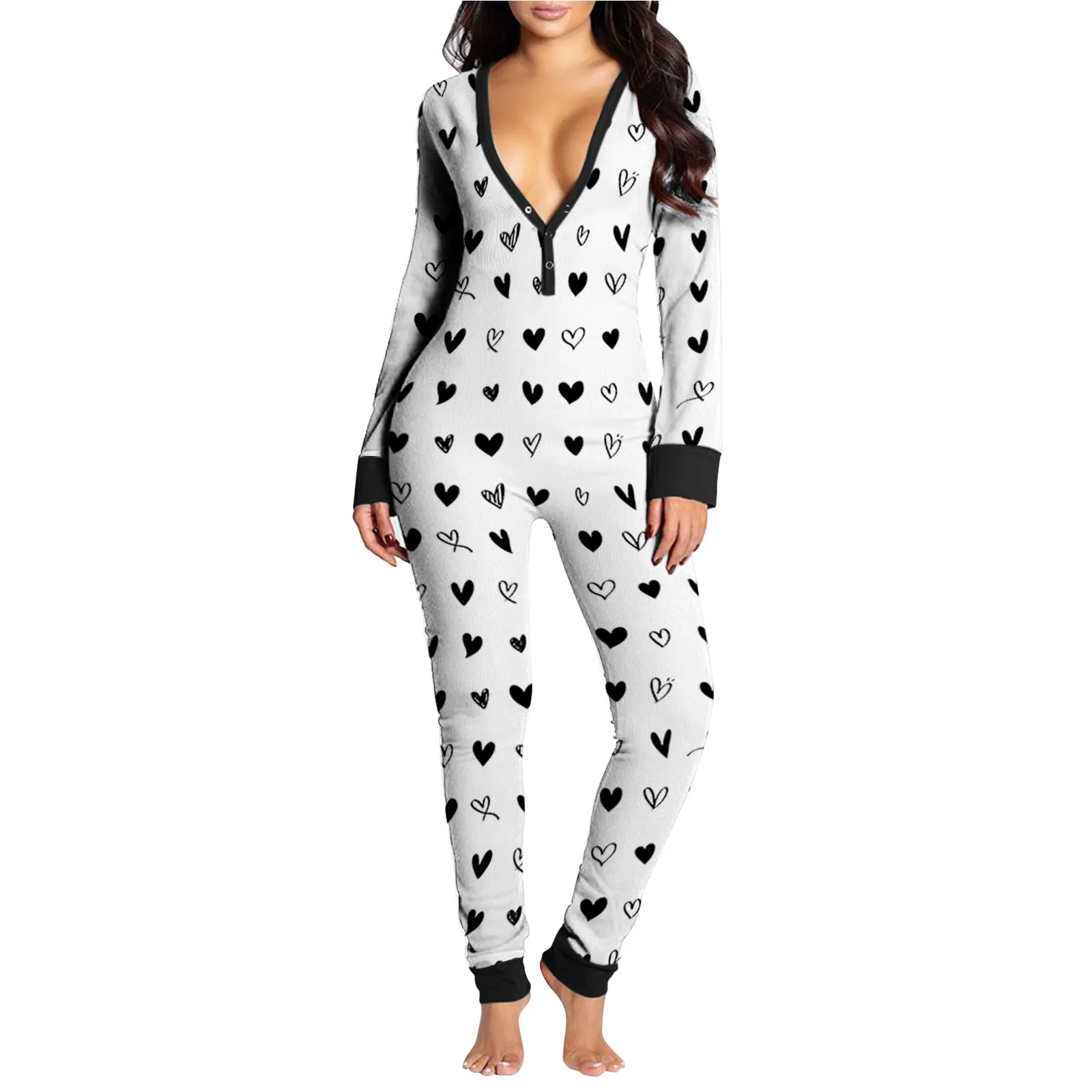 Женский комбинезон с клапаном на пуговицах и v-образным вырезом с принтом Hart