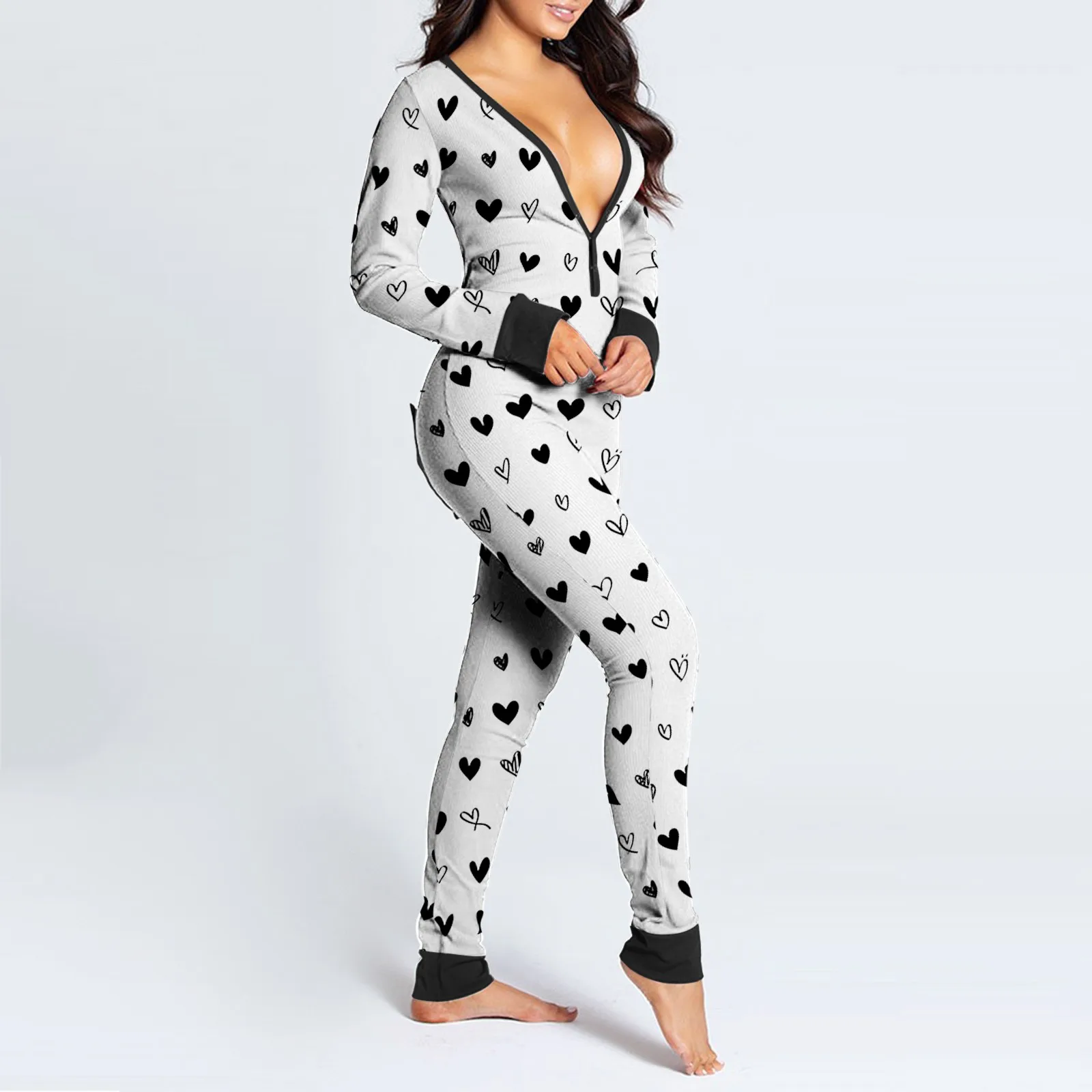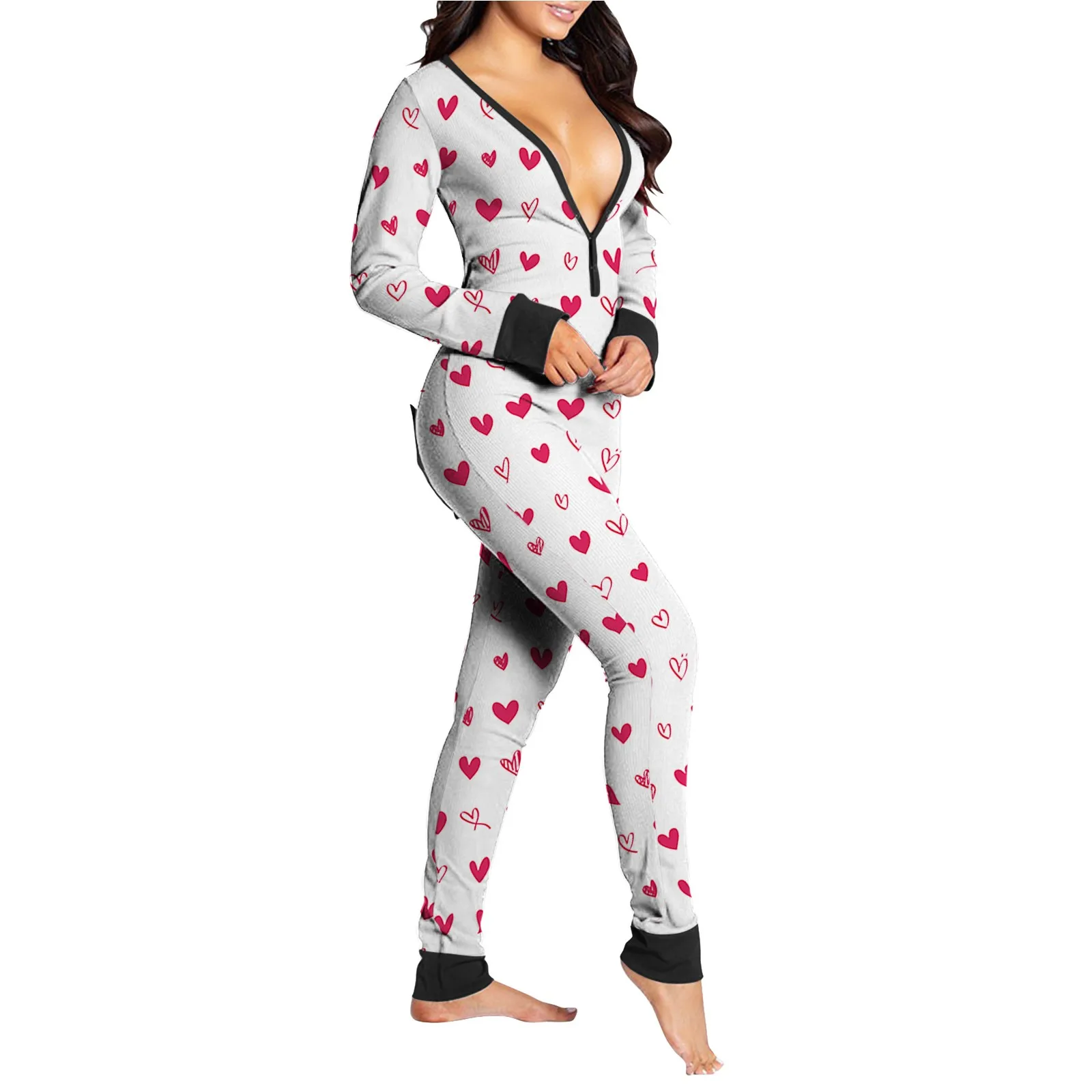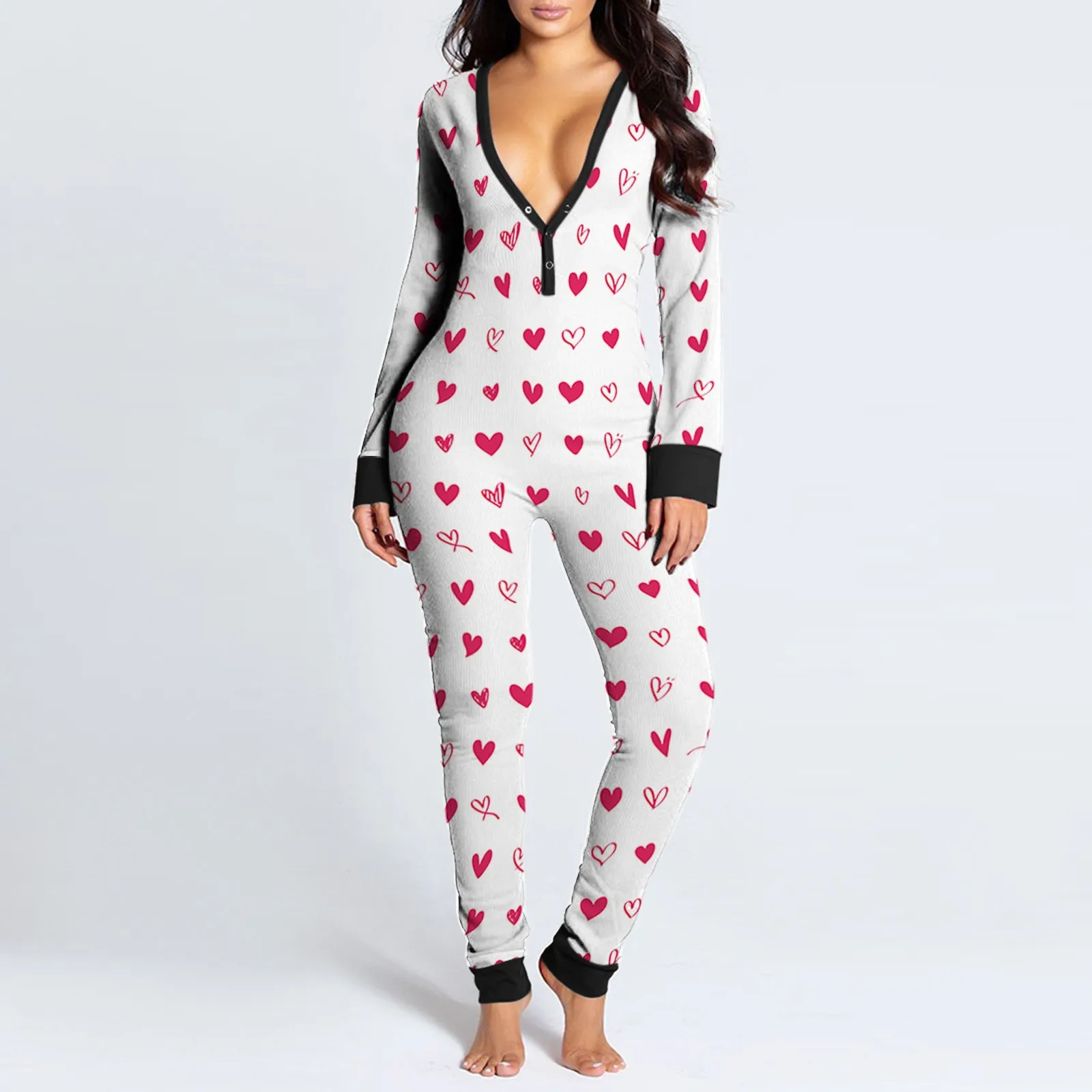 Женский комбинезон с клапаном на пуговицах и v-образным вырезом с принтом Hart