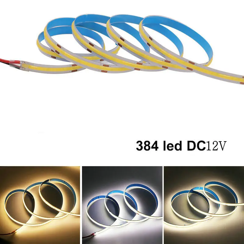 Гибкая светодиодная лента с COB матрицей, 1-5 м, 12 В постоянного тока, 384 светодиодовм, 8 мм