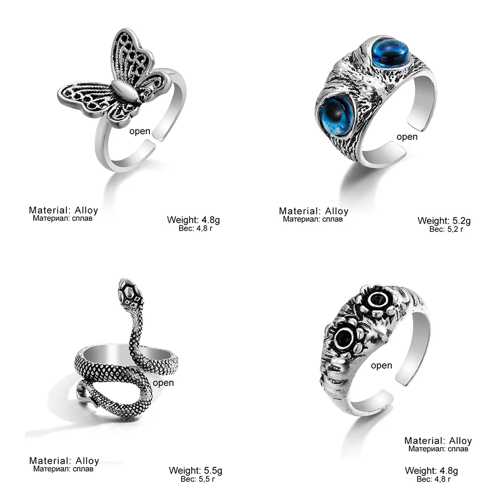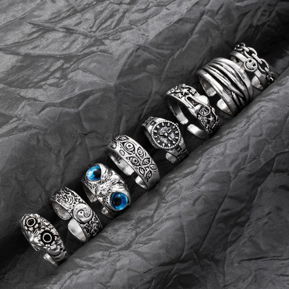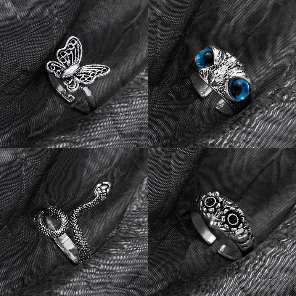 FAMSHIN серебряные кольца для женщин и мужчин, винтажные кольца со змеей и совой, старинные кольца с улыбкой в стиле панк, хип-хоп, регулируемое кольцо, модные украшения