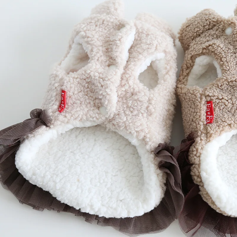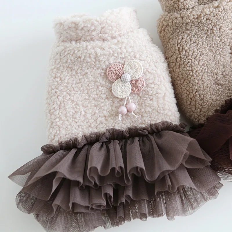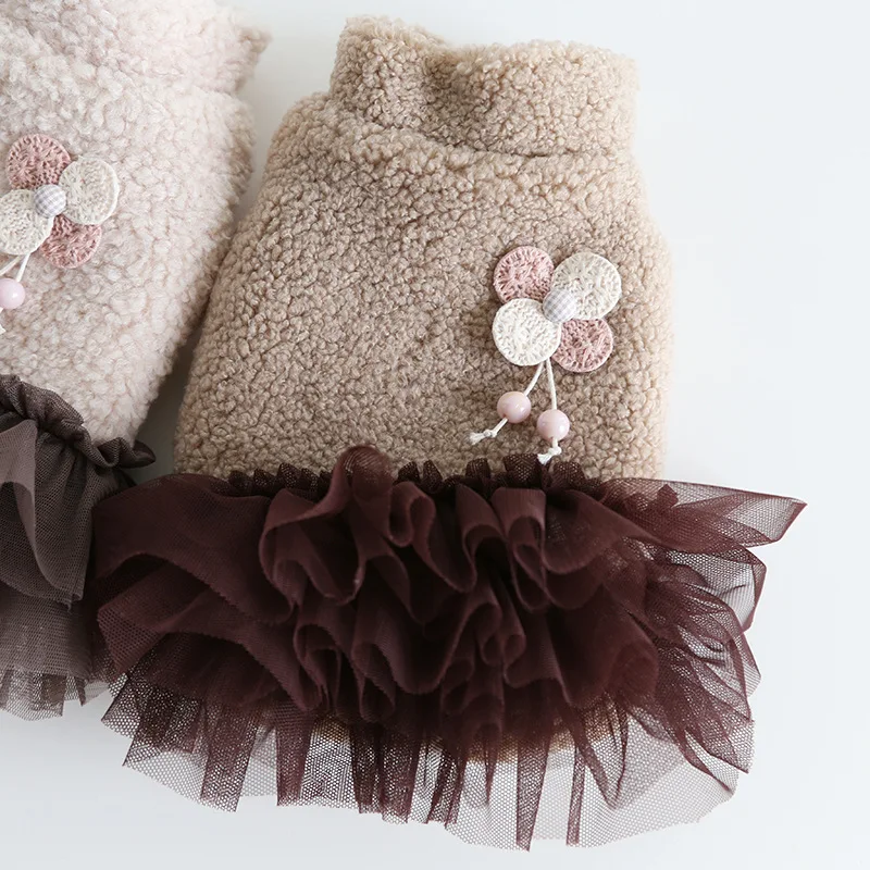 Зимнее флисовое платье принцессы, пальто для собак, флисовое теплое Тюлевое платье с цветами для щенков