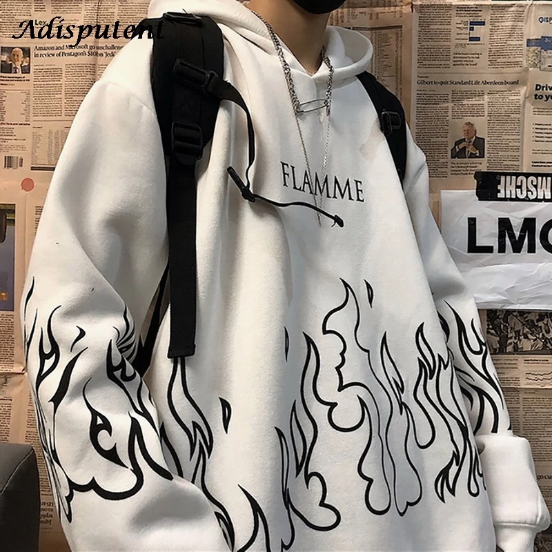 Толстовка Adisputent мужская с принтом огня, модная повседневная кофта в стиле Харадзюку, свободная толстовка в стиле хип-хоп, уличная одежда, унисекс, худи, весна