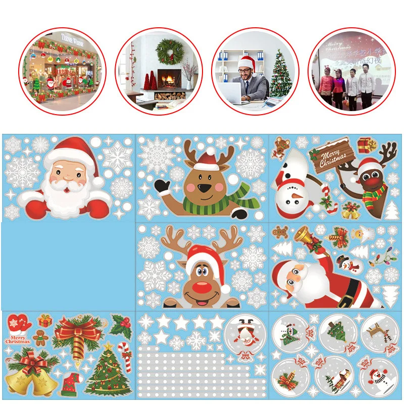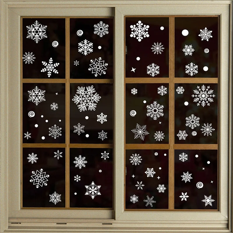 новогодние украшения 2022 наклейки новогодние съемные рождественские статические наклейки на окна красивые наклейки на стены со снежинками, наклейки на стекло для новогодвечерние новый год 2022 декор