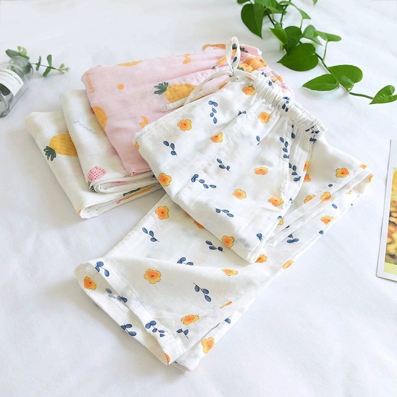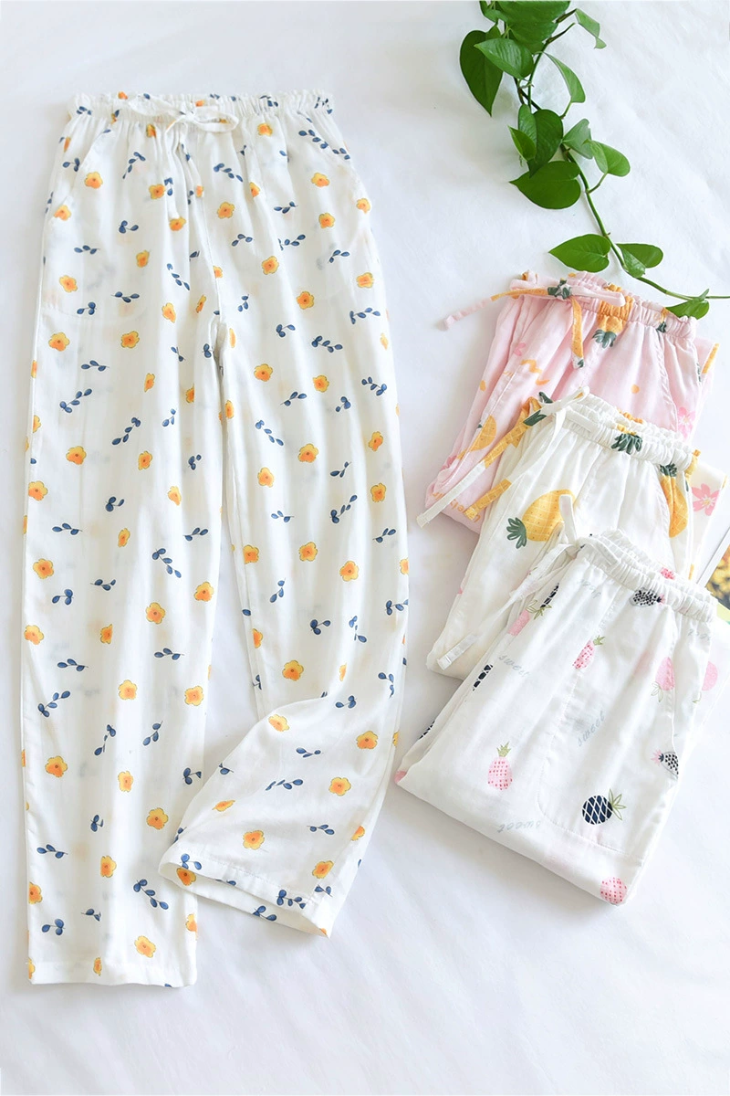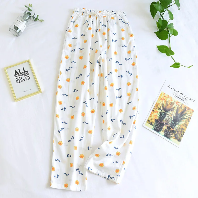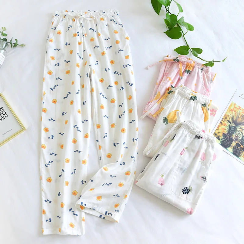 Лето 100%, хлопковые домашние штаны из марли, женские штаны для сна, горячая Распродажа, новинка, пижамные брюки с ананасами, женская одежда для сна, брюки