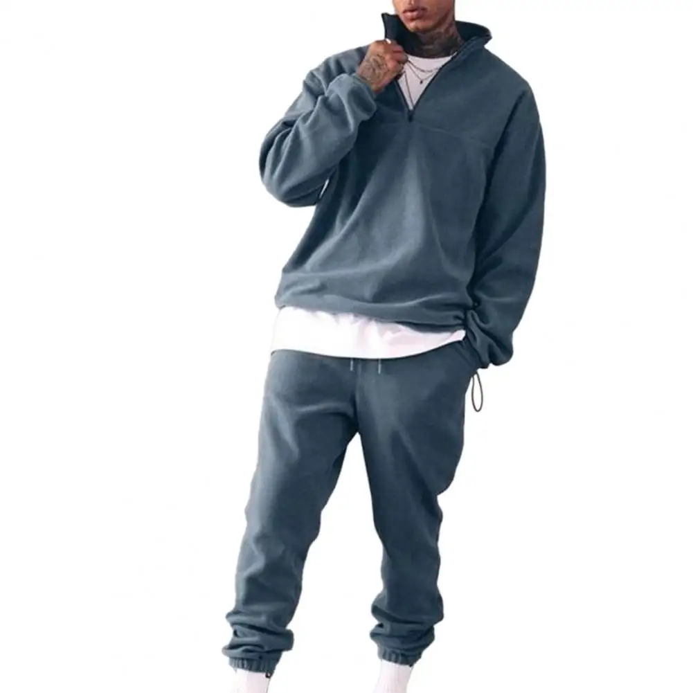 Мужской костюм с воротником-стойкой, мягкая спортивная рубашка и брюки, комплект из 2 предметов, осенне-зимний теплый Однотонный мужской спортивный костюм