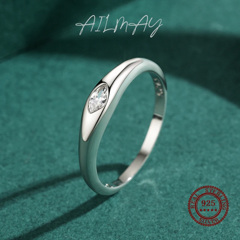 Ailmay минималистичное серебряное кольцо на палец для женщин с блестящим прозрачным Цирконом 100%, Изящные Ювелирные изделия в минималистическом стиле, новый стиль 2021