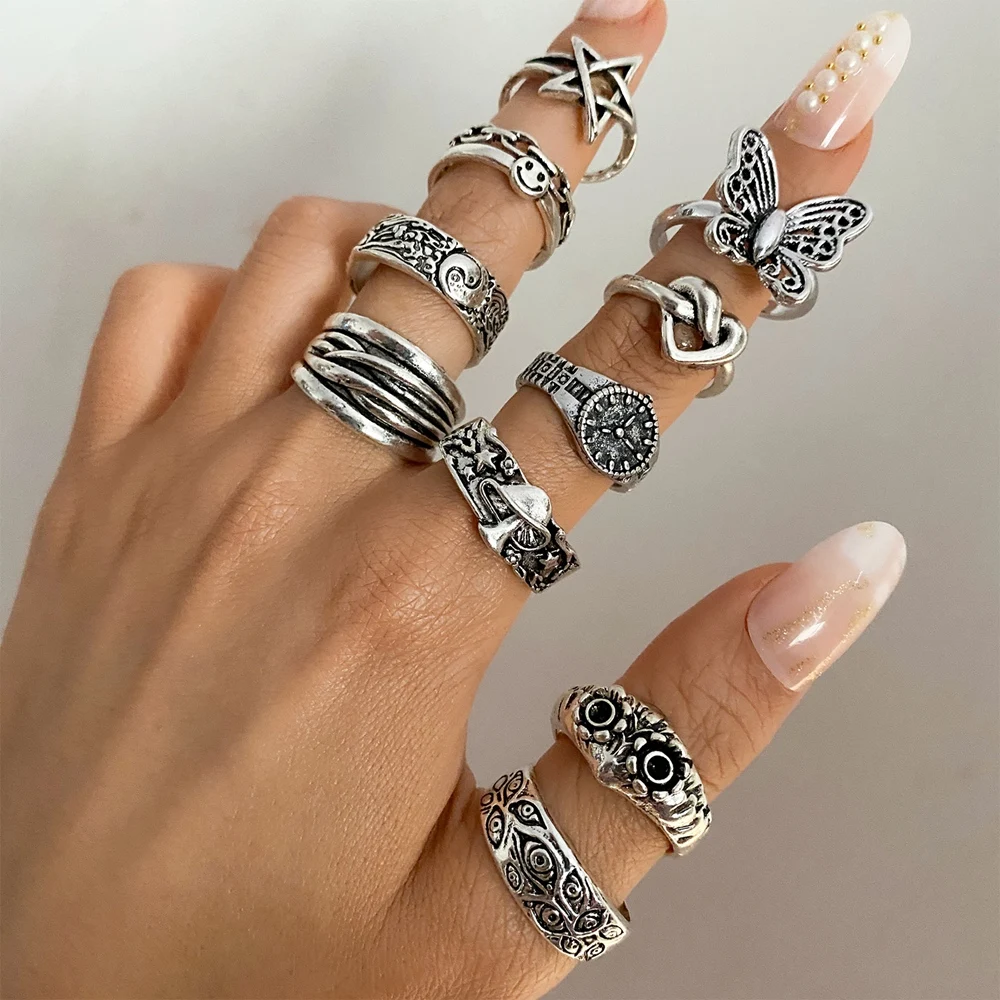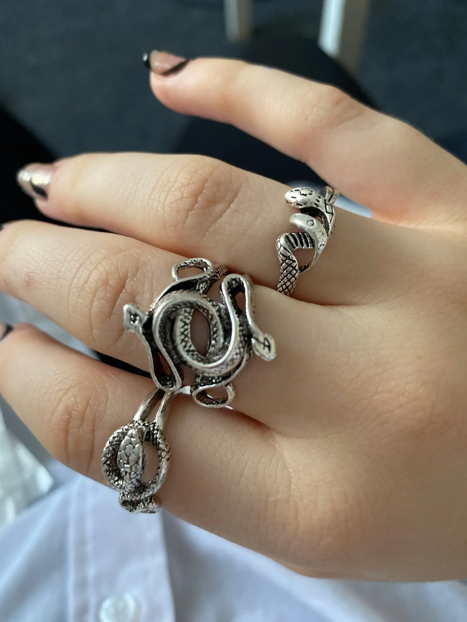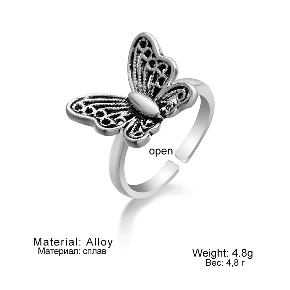 FAMSHIN Ретро панк бабочка змея кольцо для мужчин женщин индивидуальные геометрические антикварные серебряные цветные модные открытые регулируемые кольца