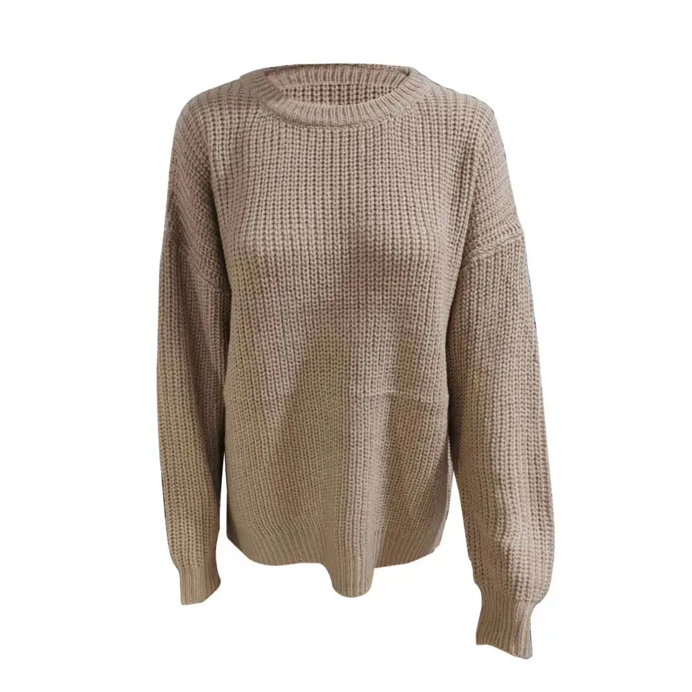 Свитер женский трикотажный однотонный, с круглым вырезом и длинными рукавами, Осень-зима