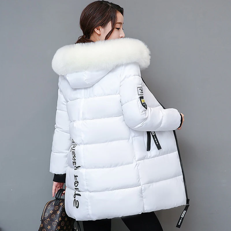 Зимнее женское пальто с капюшоном, белое, теплое, с меховым воротни...