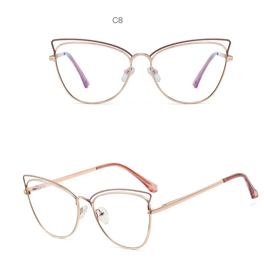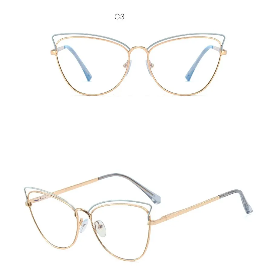 Металлические очки для женщин и мужчин, с защитой от синего света, с пружинными дужками, оправа для очков в стиле кошачьи глаза, 50194