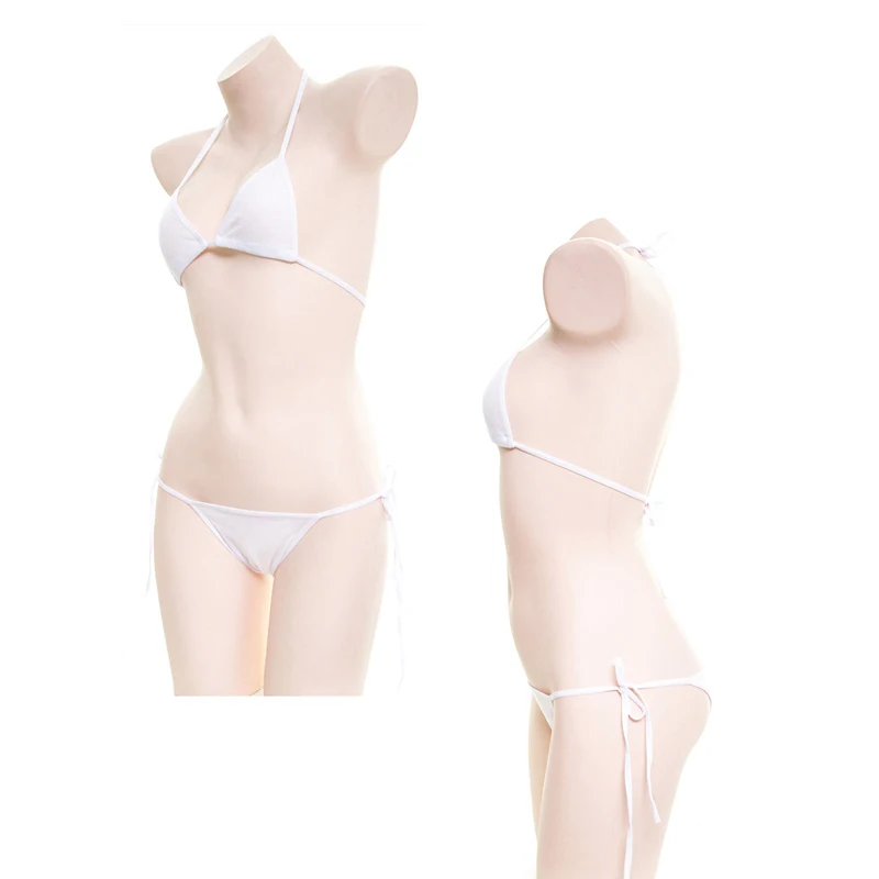 Соблазнительное нижнее белье в стиле "Лолита", кавайные синие, розовые, белые полосатые мини-бикини, японские взрослые косплей, эротические костюмы, бюстгальтер, комплект женского нижнего белья