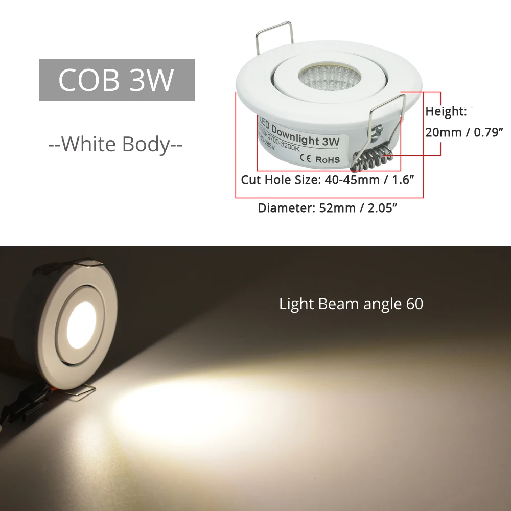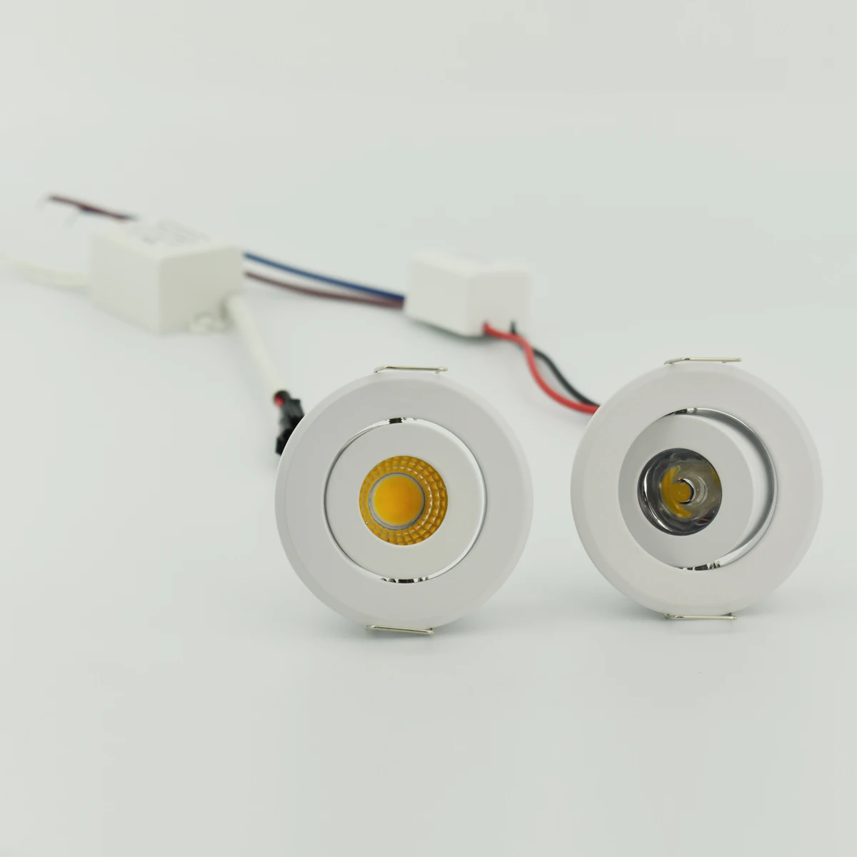 Светодиодный точечный светильник направленного света, углубленный точечный потолочный светильник с белой отделкой, полностью алюминиевый, 40-45 мм, 10 шт., 1 Вт, COB 3 Вт