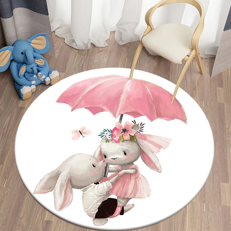 Декоративный ковер с мультяшным Кроликом, круглые коврики с принтом, ковер для гостиной, напольный коврик, фланелевый нескользящий коврик для детей