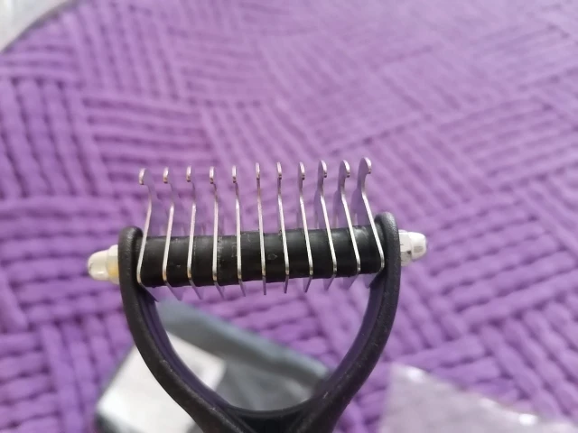 1. Расческа: Наш инструмент для ухода за домашними животными не только отлично подходит для удаления расчесок или расчесывания, но вы также можете использовать его в качестве гребня для Грабли или грабли.2. Двухсторонняя Ножевая головка: демативный грабли внутри изогнутое острое лезвие быстро режет тупой узел, легко открывается/не разрывается и портится.3. Удобная чистка: эргономичная противоскользящая рукоятка, удобная и расслабленная. Грабли из нержавеющей стали очень прочные и легко чистятся.4. Защищает кожу домашних животных: круглые зубы из нержавеющей стали делают ее более безопасной и удобной для кожи домашних животных. Наш инструмент не только помогает удалить нижние части и свободные волосы, не вытягивая и не режя мех, но также режет через узлы и вынимает коврики, не царапая кожу питомца.5. Храните ваших питомцев в безопасности: округлые концы зубов не вредят коже вашего питомца, но они отлично подходят для массажа, пожалуйста, аккуратно чистите чувствительную кожу, ухаживайте за драгированием, чтобы повысить здоровье кожи.