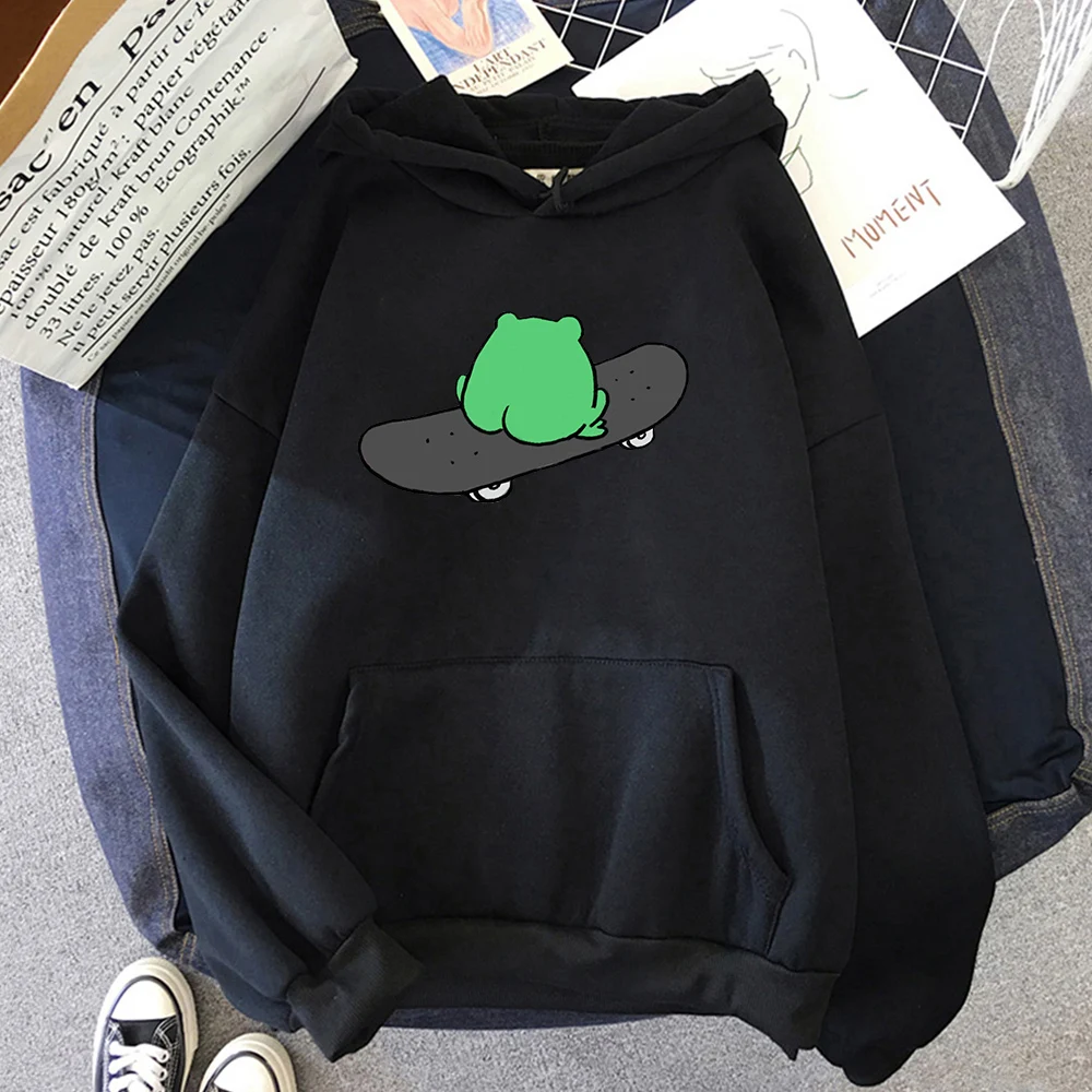 Толстовка для скейтборда с лягушкой Женская кавайная Толстовка большого размера d худи в стиле Харадзюку Эстетическая Толстовка Топы Повседневный Женский пуловер