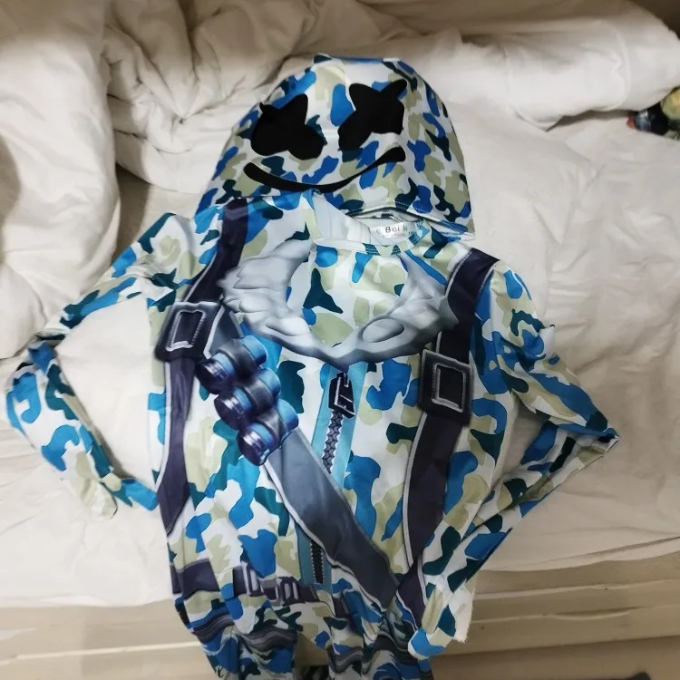 Детский популярный костюм на Хэллоуин для косплея ди-Джея Marshmello с головным убором комбинезон для мальчиков и девочек Комбинезон для выступлений на карнавальной вечеринке