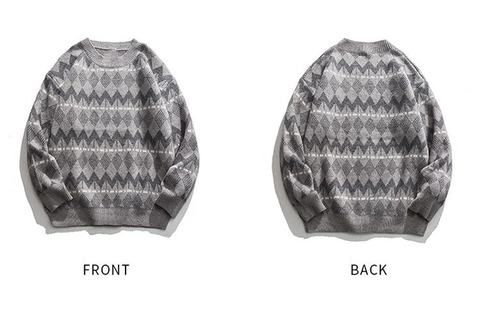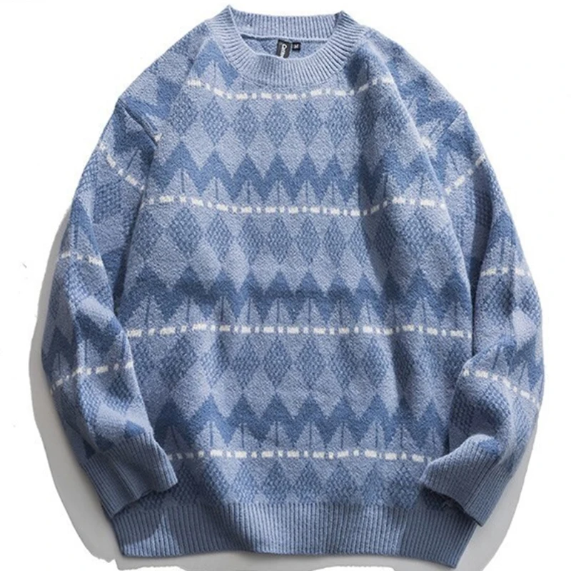 Мужской винтажный Свитер оверсайз, зимний трикотажный пуловер в сти...