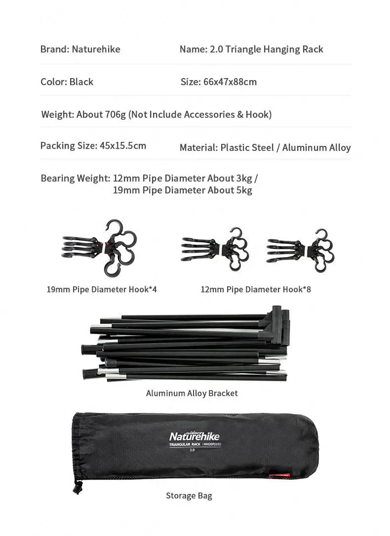 Складная полка для кемпинга Naturehike, алюминиевый сплав, вешалка для хранения одежды, кухонное оборудование, подвесная треугольная стойка