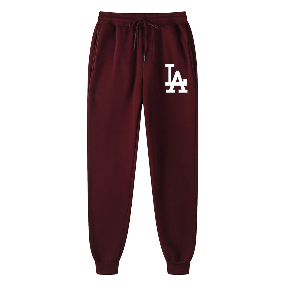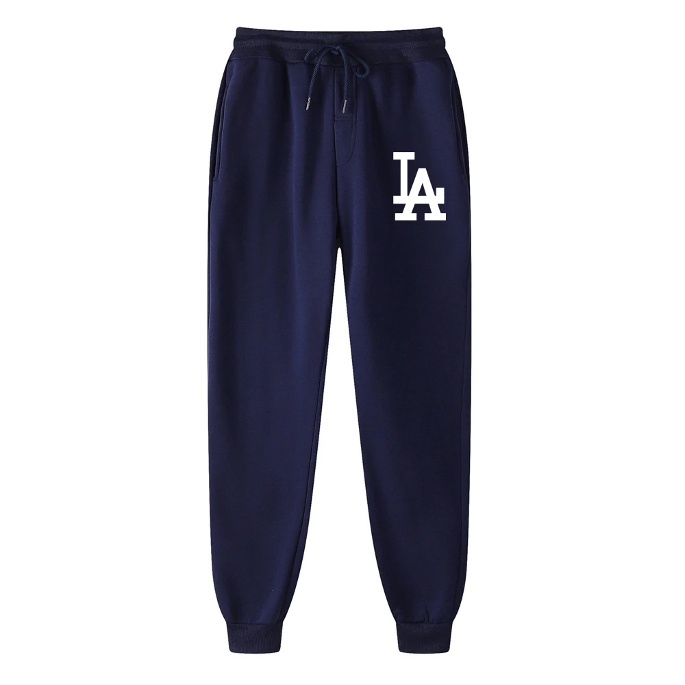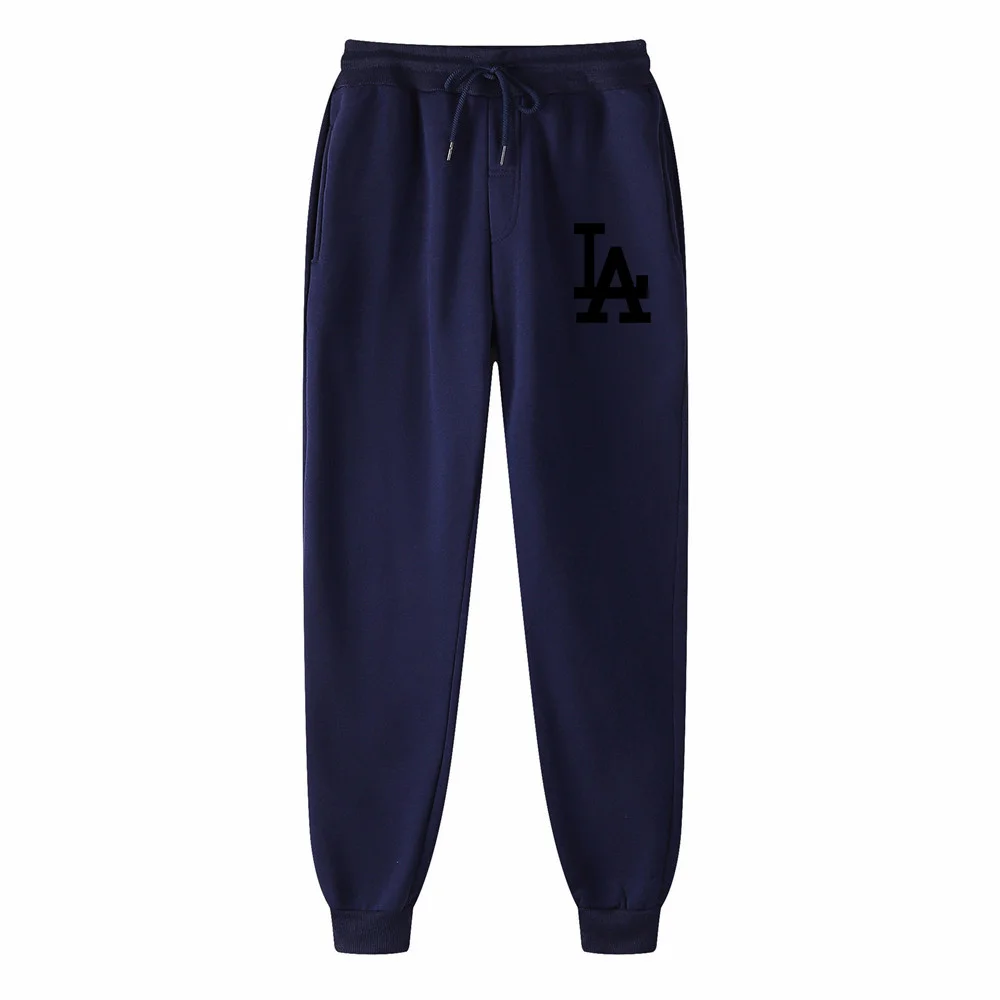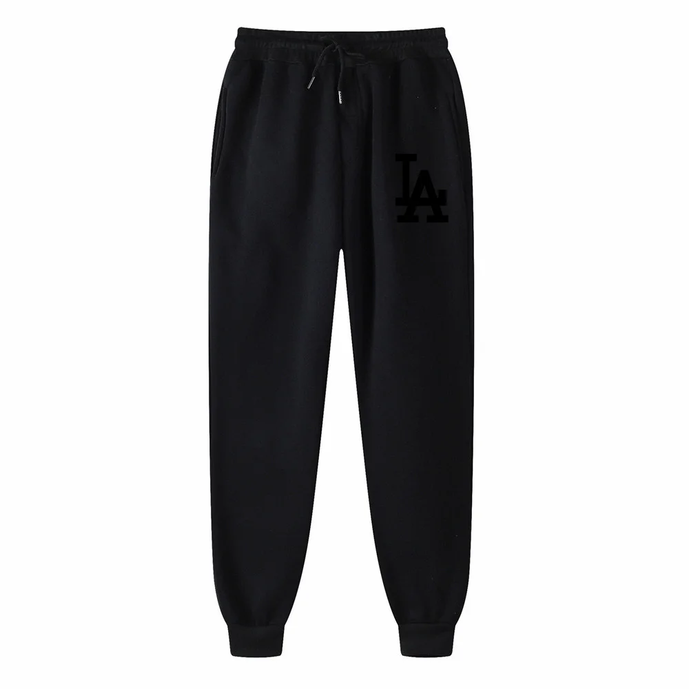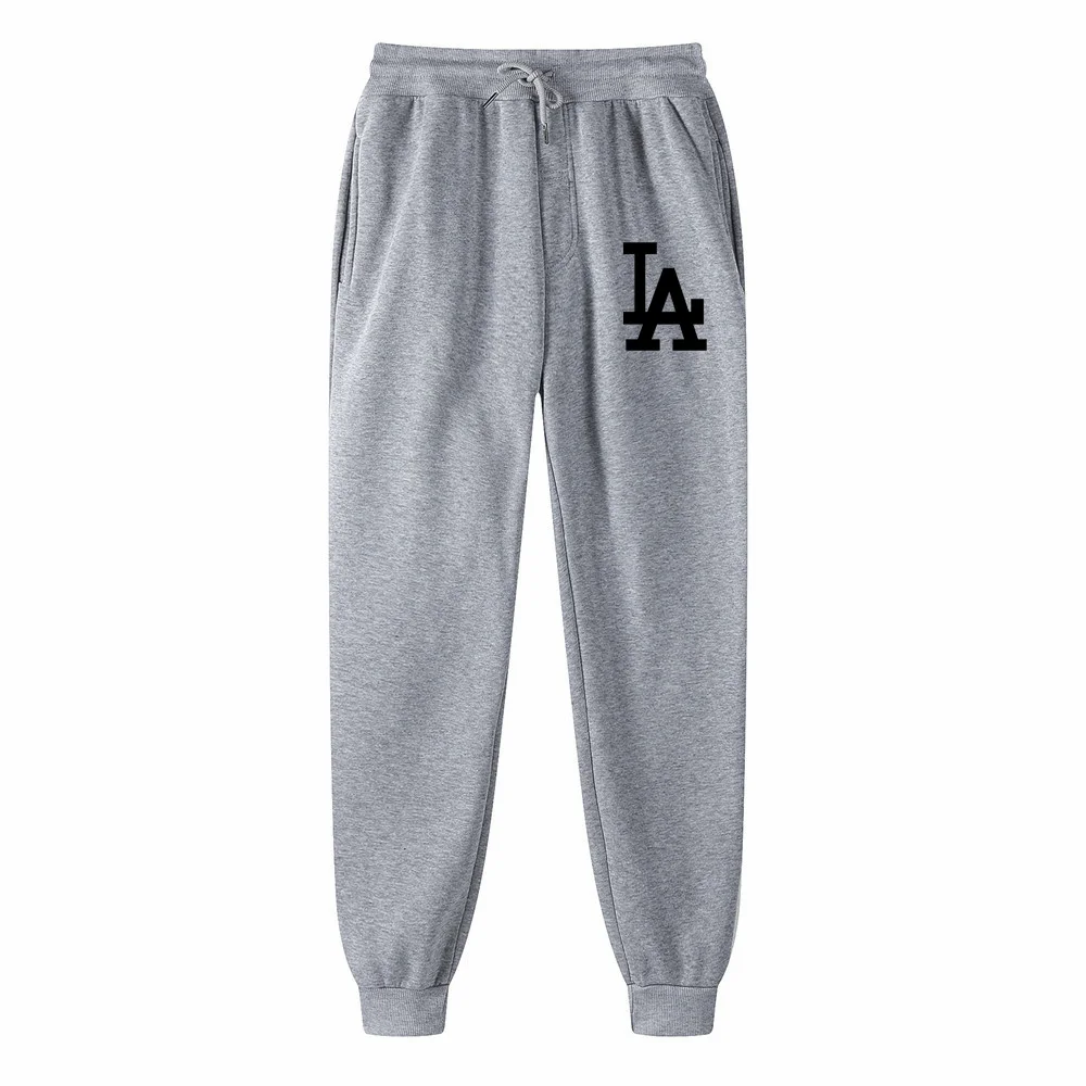 Мужские спортивные штаны с принтом LA, повседневные облегающие однотонные хлопковые джоггеры с принтом, спортивные брюки