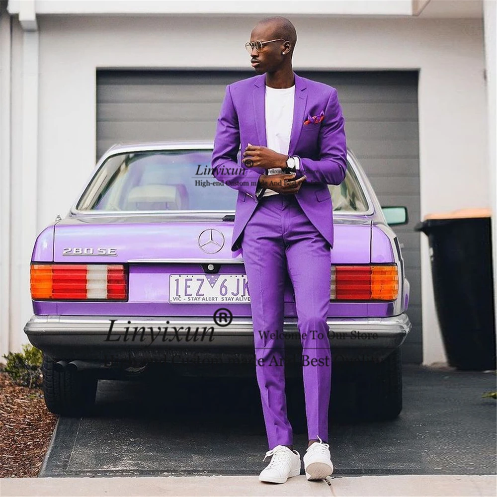 Новейший дизайн, фиолетовый мужской костюм, облегающий, на свадьбу, для жениха, v-образный вырез, петличный смокинг, вечерний Блейзер, мужской костюм из 2 предметов, пиджак и брюки