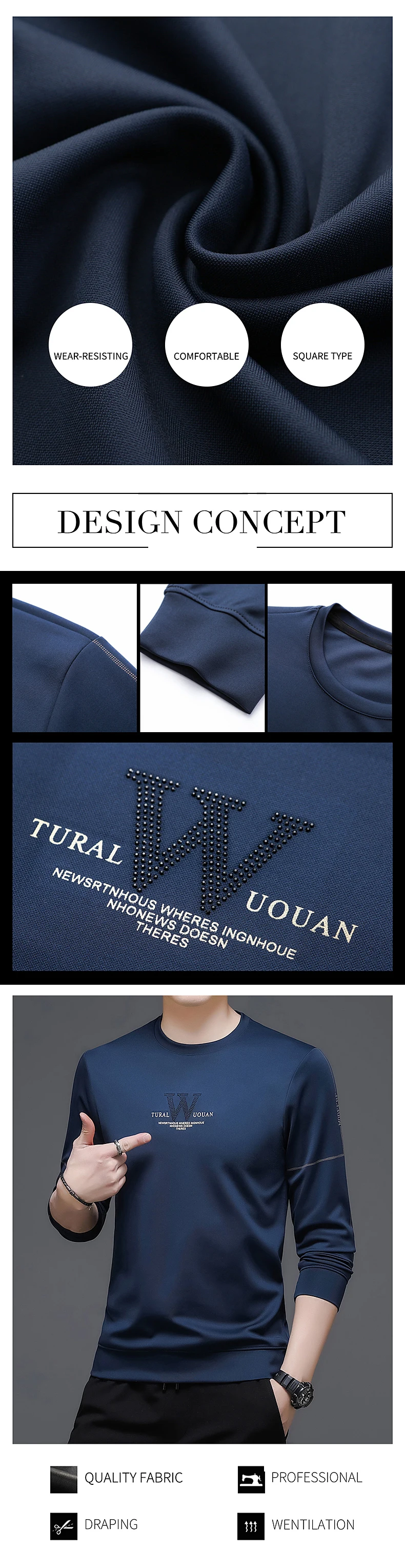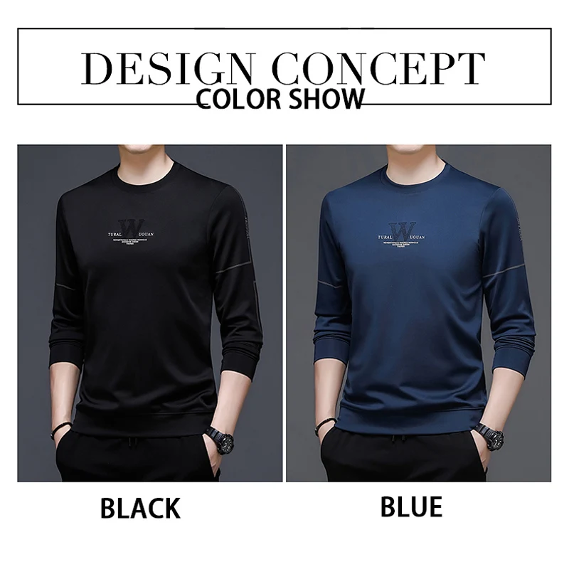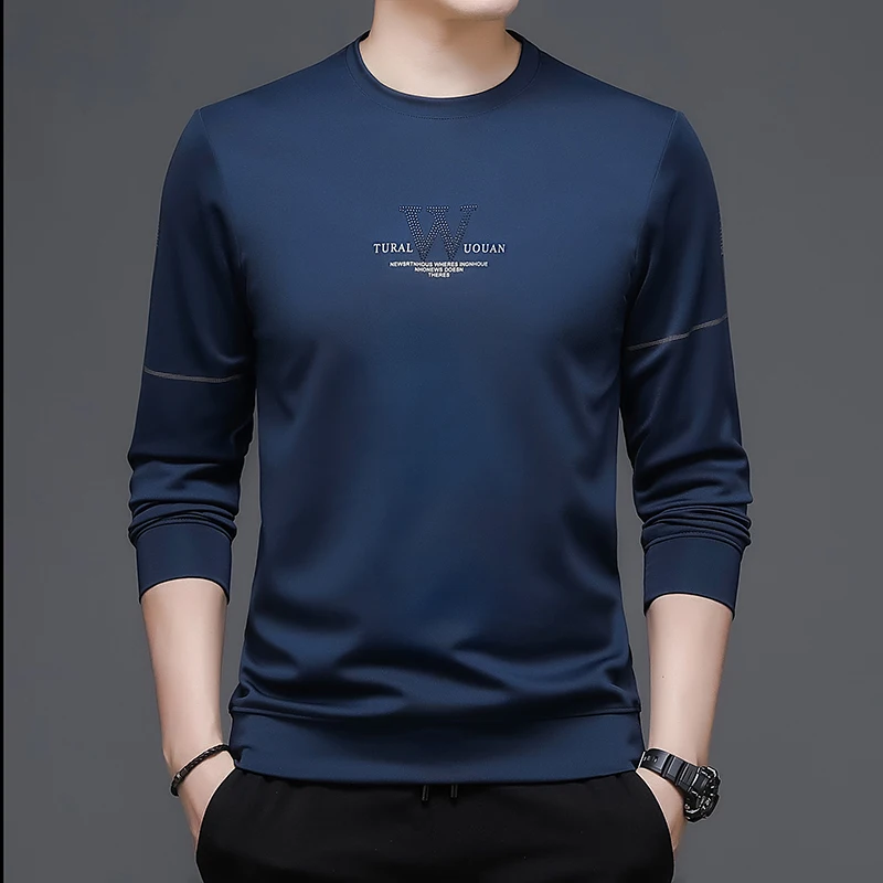Мужская футболка с круглым вырезом BROWON, модная футболка из полиэстера с длинным рукавом и круглым вырезом, осенняя одежда
