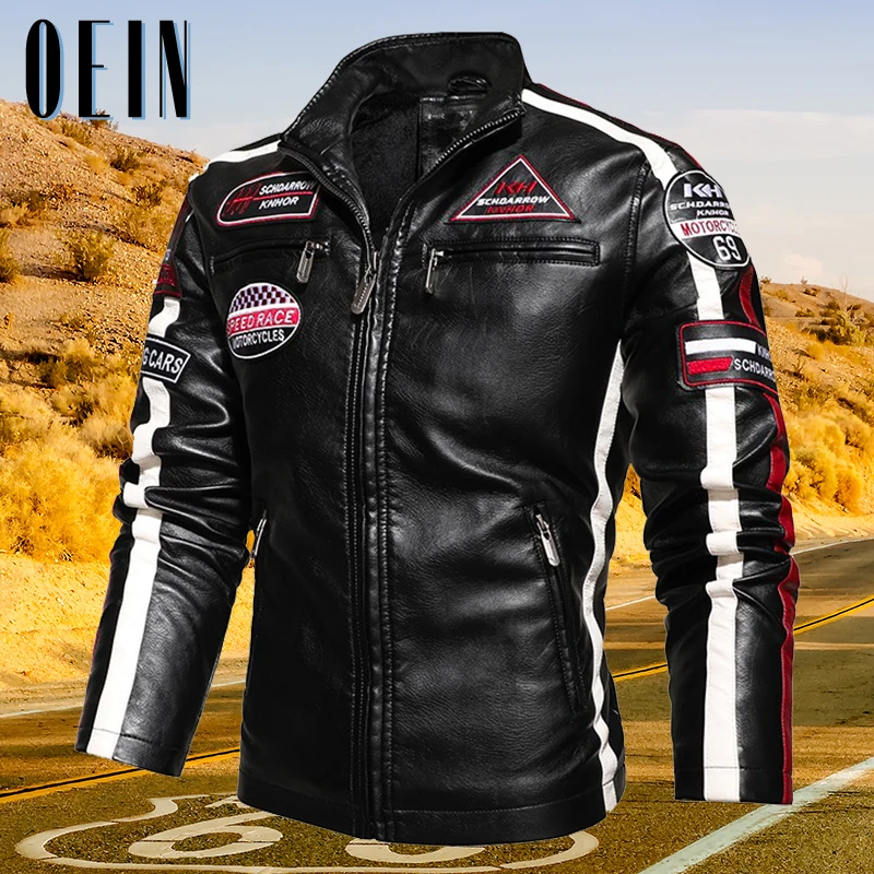 Мужская зимняя куртка OEIN из искусственной кожи, на флисе, в стиле милитари, мотоциклетная ветровка, 2021