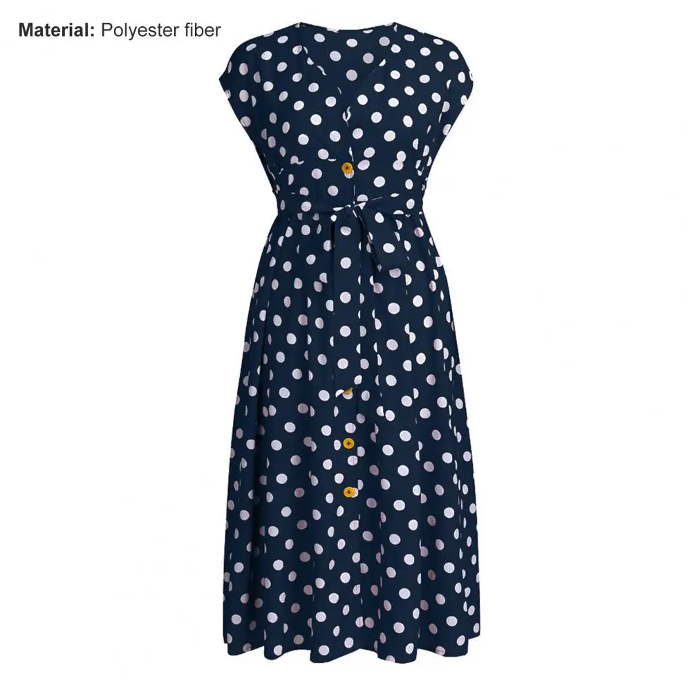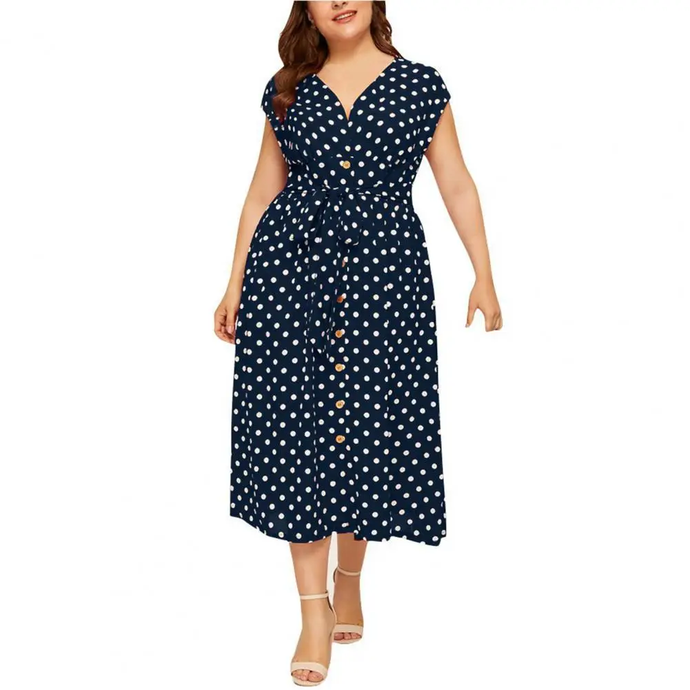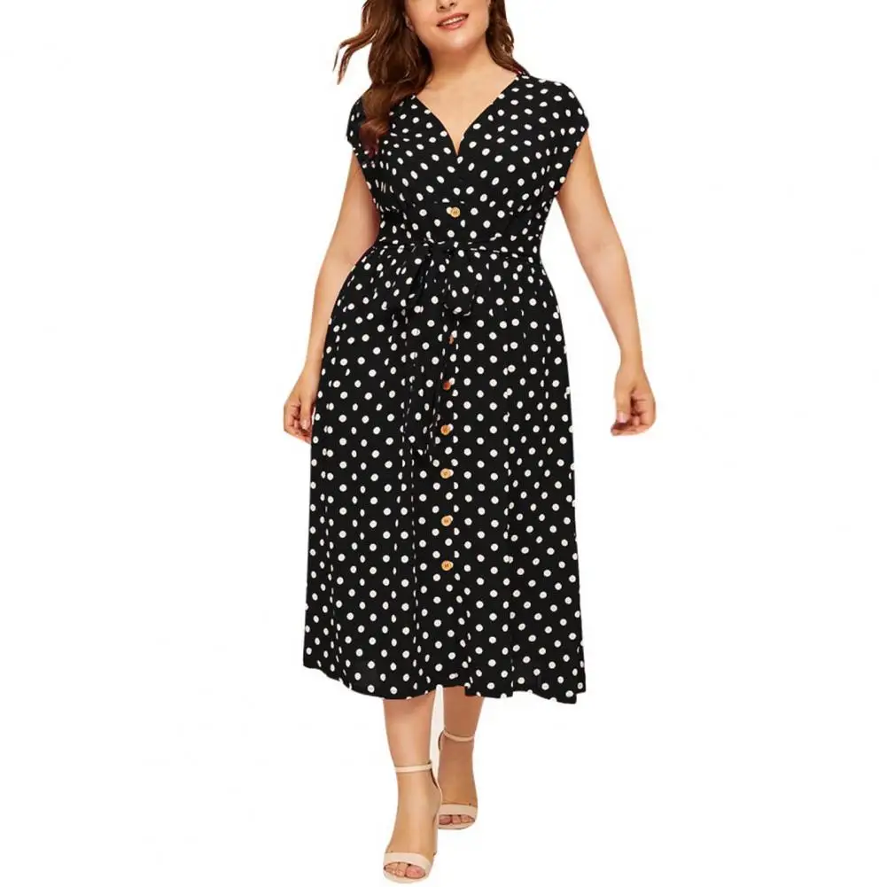 Женское платье в горошек с v-образным вырезом, летнее однобортное платье без рукавов с большим подолом для офиса Описание:Это платье миди с узором в горошек очень красивое и стильное. И пояс можно использовать для регулировки размера талии и завязывать бант, чтобы сделать вас более привлекательным.Дизайн с v-образным вырезом идеально подходит для ношения ожерелья и ретуши вашего лица, это делает вашу шею более стройной и красивой.Тонкое Платье из высококачественного полиэфирного материала обеспечивает ощущение мягкости и комфорта.Есть пять размеров: XL, 2XL, 3XL, 4XL, 5XL.Вы можете носить это платье для банкета, вечерние, свадебные, выпускные, свидания и т. д. Наименование товара: платьеМатериал: полиэстерСтиль: Повседневный, модныйПол: женщинТип Посадки: тонкийТип воротника: v-образный вырезДлина рукава: без рукавовДлина платья: платье мидиСезон: летоОсобенности: мягкий, с принтом, дышащийИнформация о размере:[Наш Размер XL] Обхват груди: 102 см/40,2 дюйма, обхват талии: 92 см/36,2 дюйма, длина: 121 см/47,6 дюйма (прибл.)[Наш Размер 2XL] Обхват груди: 108 см/42,5 ", обхват талии: 98 см/38,6", длина: 122 см/48 "(прибл.)[Наш Размер 3XL] Обхват груди: 114 см/44,9 дюйма, обхват талии: 104 см/40,9 дюйма, длина: 123 см/48,4 дюйма (приблизительно)[Наш Размер 4XL] Обхват груди: 120 см/47,2 дюйма, обхват талии: 106 см/41,7 дюйма, длина: 124 см/48,8 дюйма (прибл.)[Наш Размер 5XL] Обхват груди: 126 см/49,6 дюйма, обхват талии: 110 см/43,3 дюйма, длина: 125 см/49,2 дюйма (прибл.) Примечания:Пожалуйста, обратитесь к нашей таблице размеров и выберите правильный размер.Благодаря светильник и экрана Цвет Товара может быть s светильник ly отличается из-за характеристик монитора компьютера. Посылка включает в себя:1 платье (другие не входят в комплект)