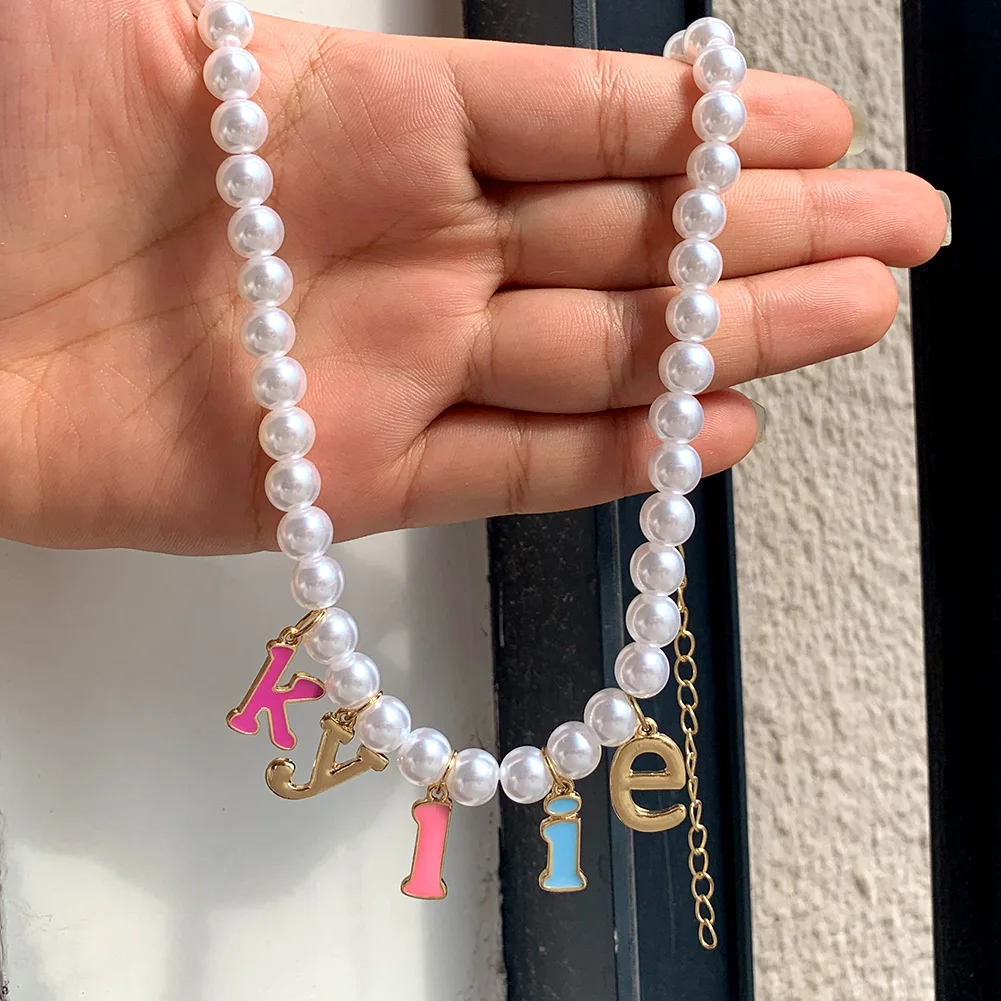 Корейское ожерелье Candy Kylie с бисером, белый жемчуг для женщин, чокер с имитацией жемчуга, ожерелья с подвесками в виде глазурованной буквы