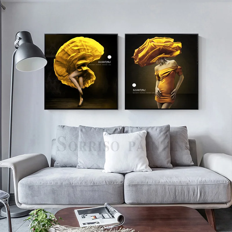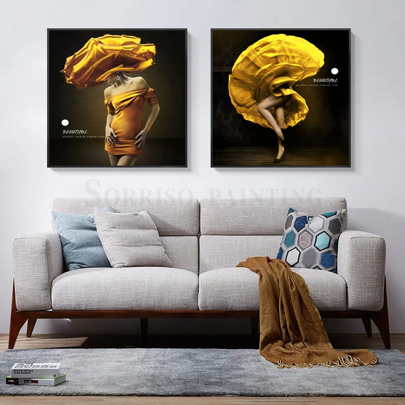 Желтая юбка в скандинавском стиле, женщина, девушка, холст, живопись, современная настенная фотография для гостиной, дома, прихожей, Декор