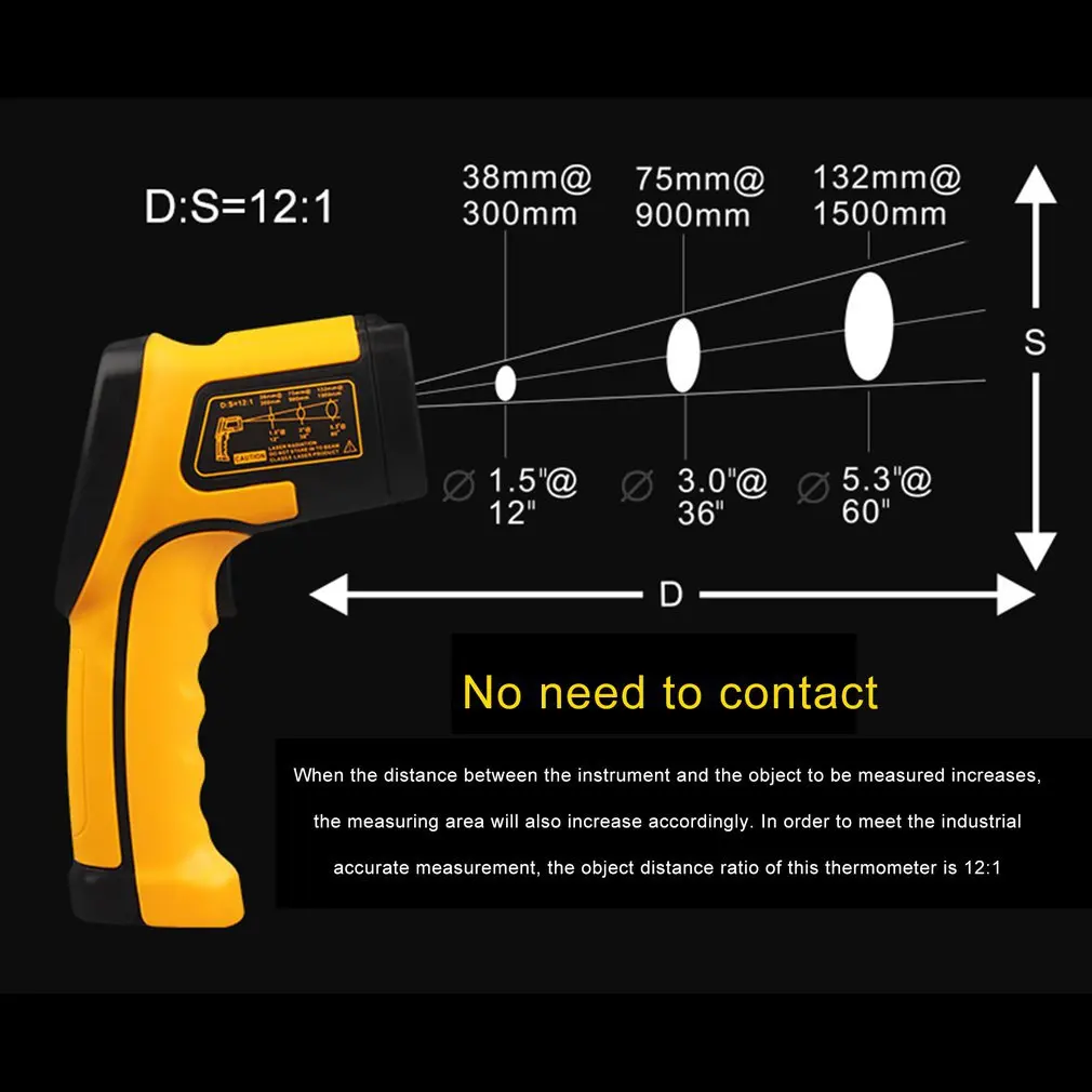 ИК-термометр бесконтактный, портативный цифровой лазерный пирометр с ЖК-экраном и подсветкой -50600C