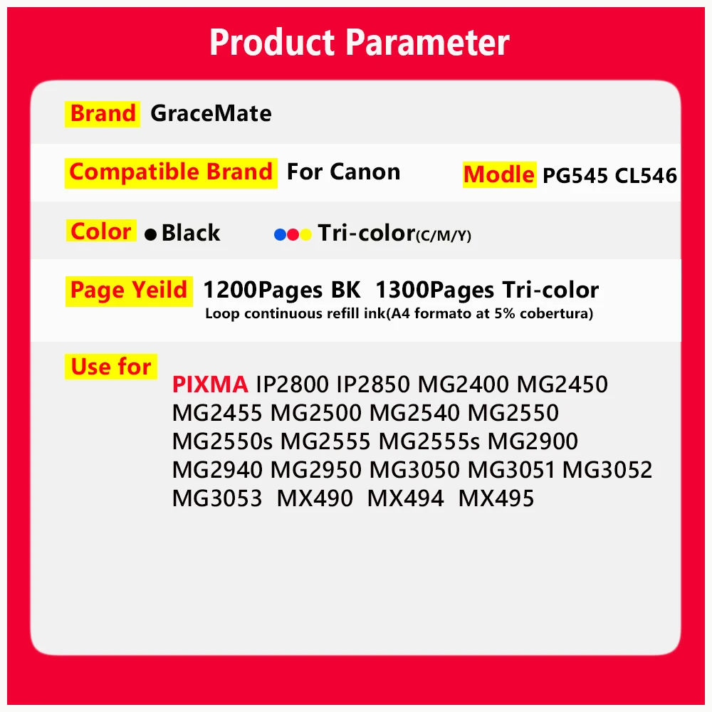 Совместимый бренд: Совместим с Canon Модель: PG545,CL546