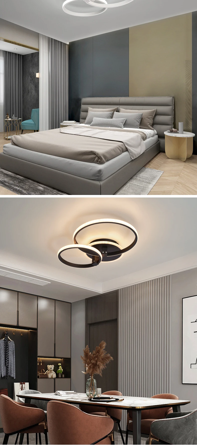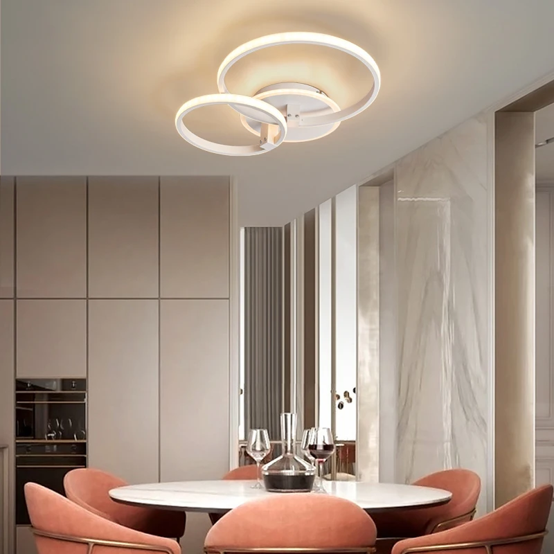 Современная светодиодная люстра, кухонный светильник с дистанционным управлением, с регулируемой яркостью, дизайнерские круглые кольца с приложением для гостиной, спальни, потолочные светильники