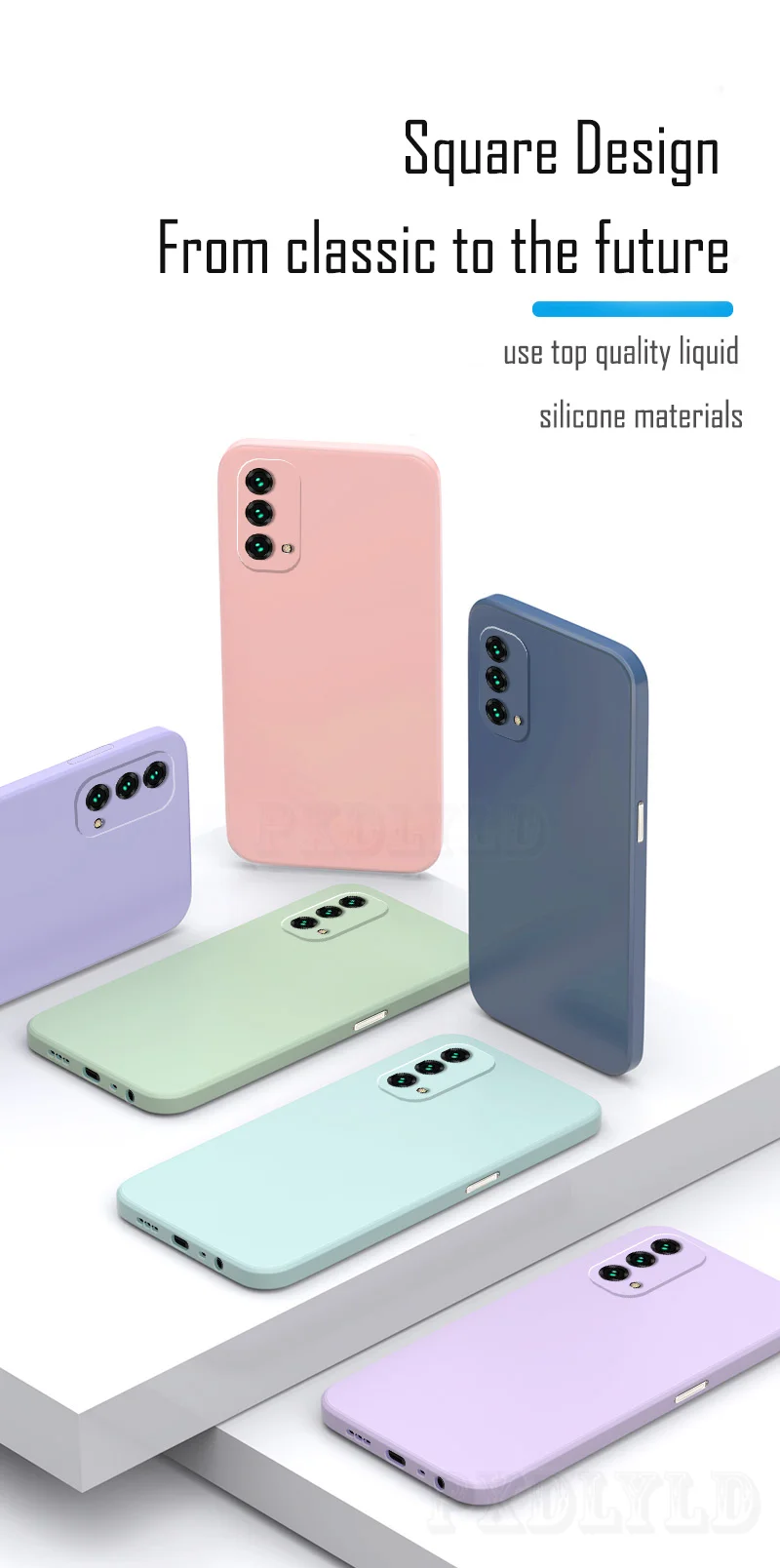Модный мягкий чехол из жидкого силикона с квадратной рамкой для тел...