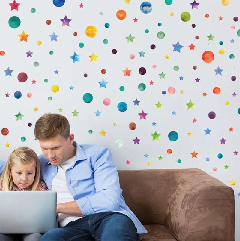 Rainbowcolor Dots Star Настенная Наклейка для детской комнаты, домашний декор для детей, наклейки, креативные Съемные Виниловые наклейки сделай сам для гостиной