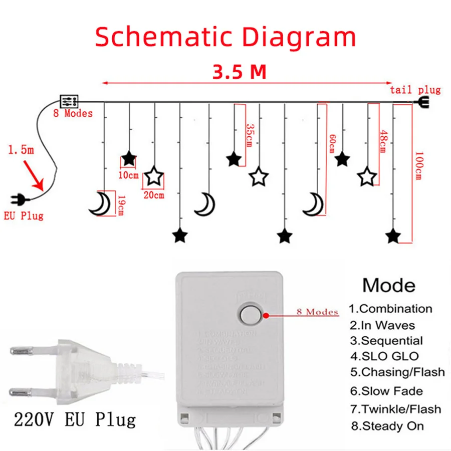 Рождественская гирлянда-занавес, 8 режимов, 3,5 м