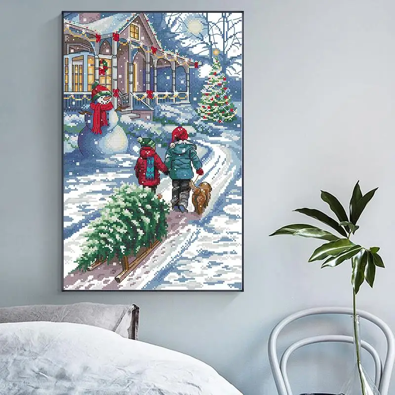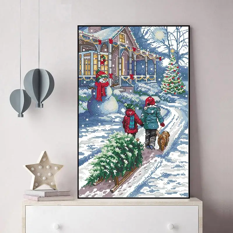 Joy Sunday/Зимний Рождественский комплект для снежной сцены с крестиком, набор для рукоделия с декором, 11CT 14CT, Счетный холст, набор с вышивкой, домашний декор