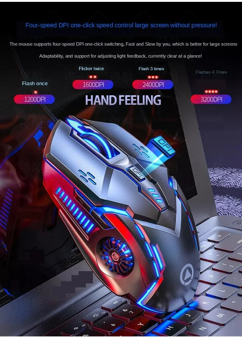 Бесшумная USB Проводная мышь, шестиклавишная светящаяся игровая электронная спортивная механическая компьютерная принадлежность, ремешок светодиодный ная подсветка, 6 кнопок, ПК, ноутбука