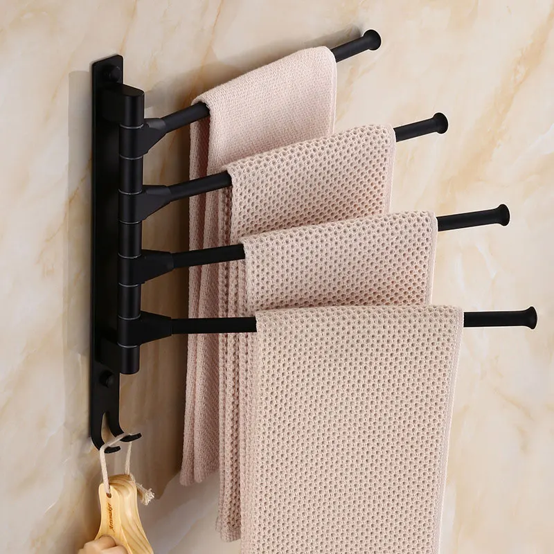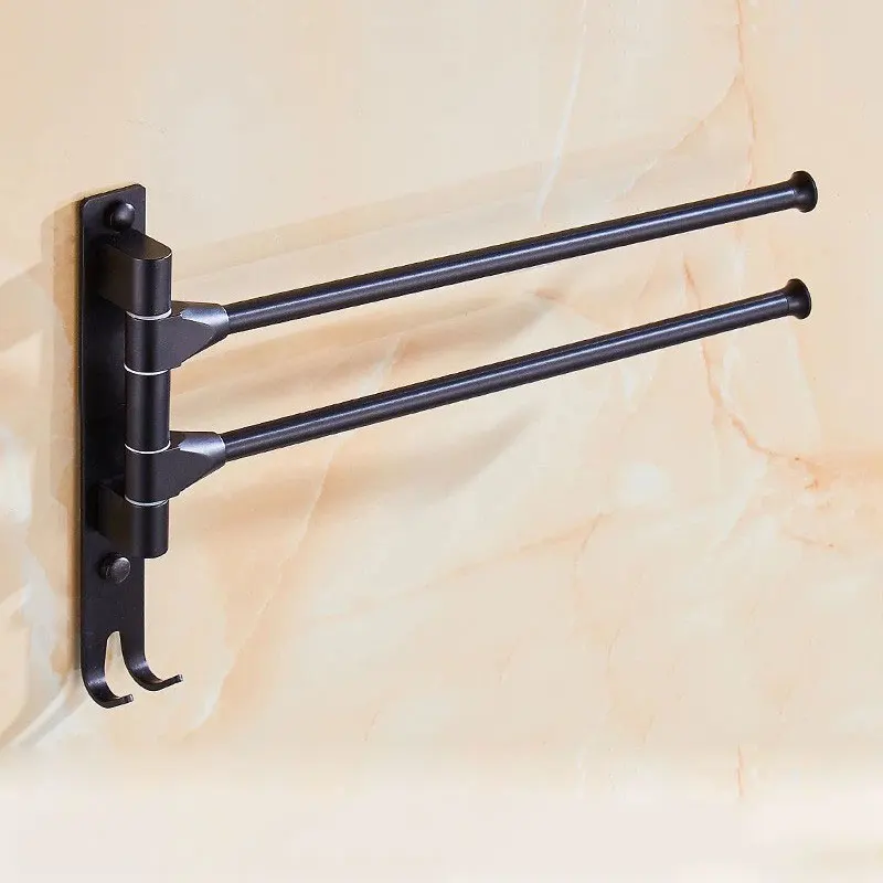 Вешалка для полотенец в ванную комнату, черная, из алюминия, с вращ...