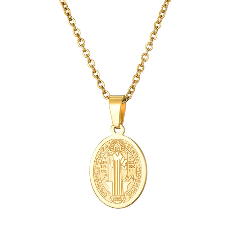 Религия орден Святого Бенедикта ожерелья для мужчин и женщин золотой цвет нержавеющая сталь Сан Бенито медаль кулон ожерелье длинное колье