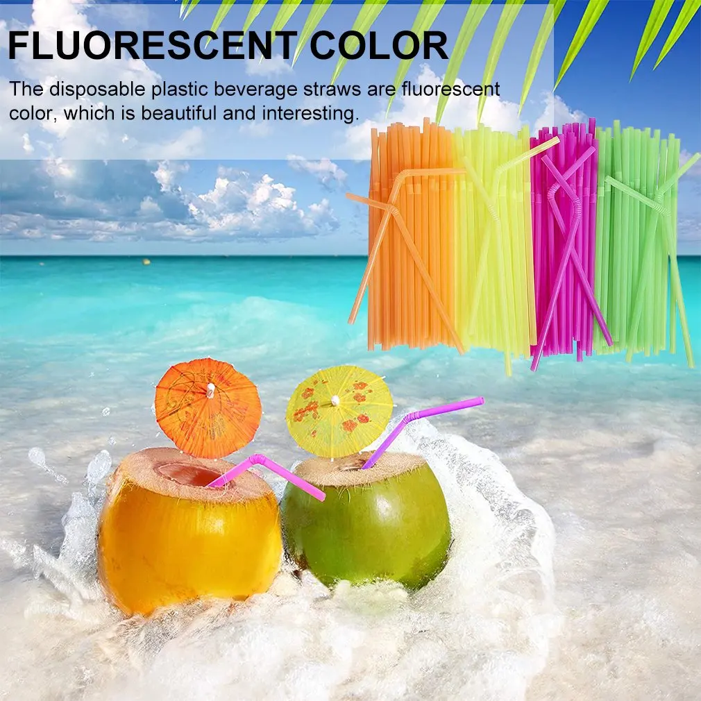 Неоновые гибкие трубочки, разноцветные Разноцветные Одноразовые трубочки для питья 210 мм
