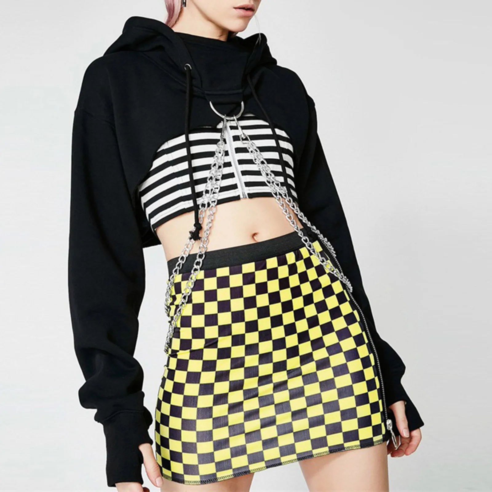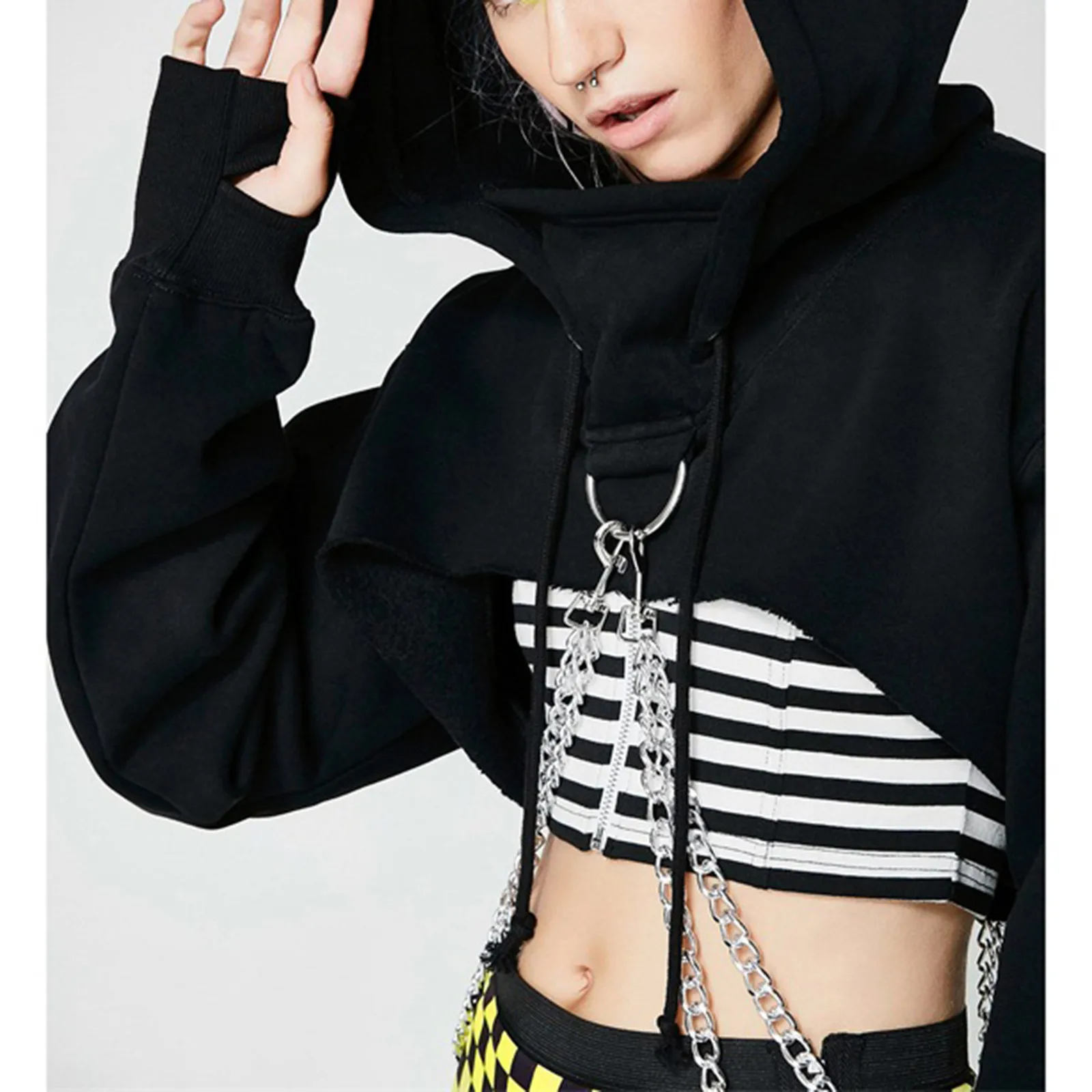 Женская повседневная толстовка на молнии, готическая Черная Толстовка Y2k, Укороченный свитшот в стиле панк и E-girl, верхняя одежда в стиле Харадзюку С Длинным Рукавом, сексуальная клубная одежда для вечерние